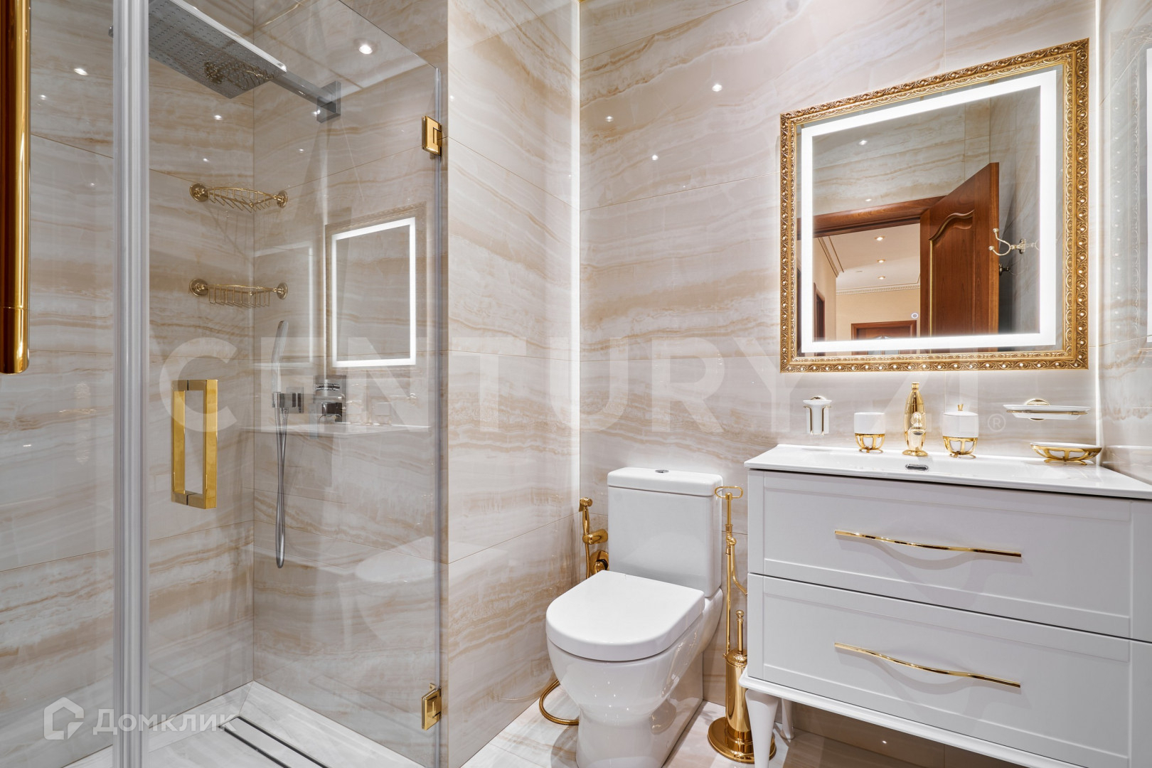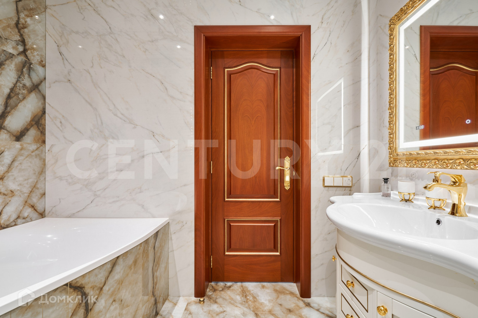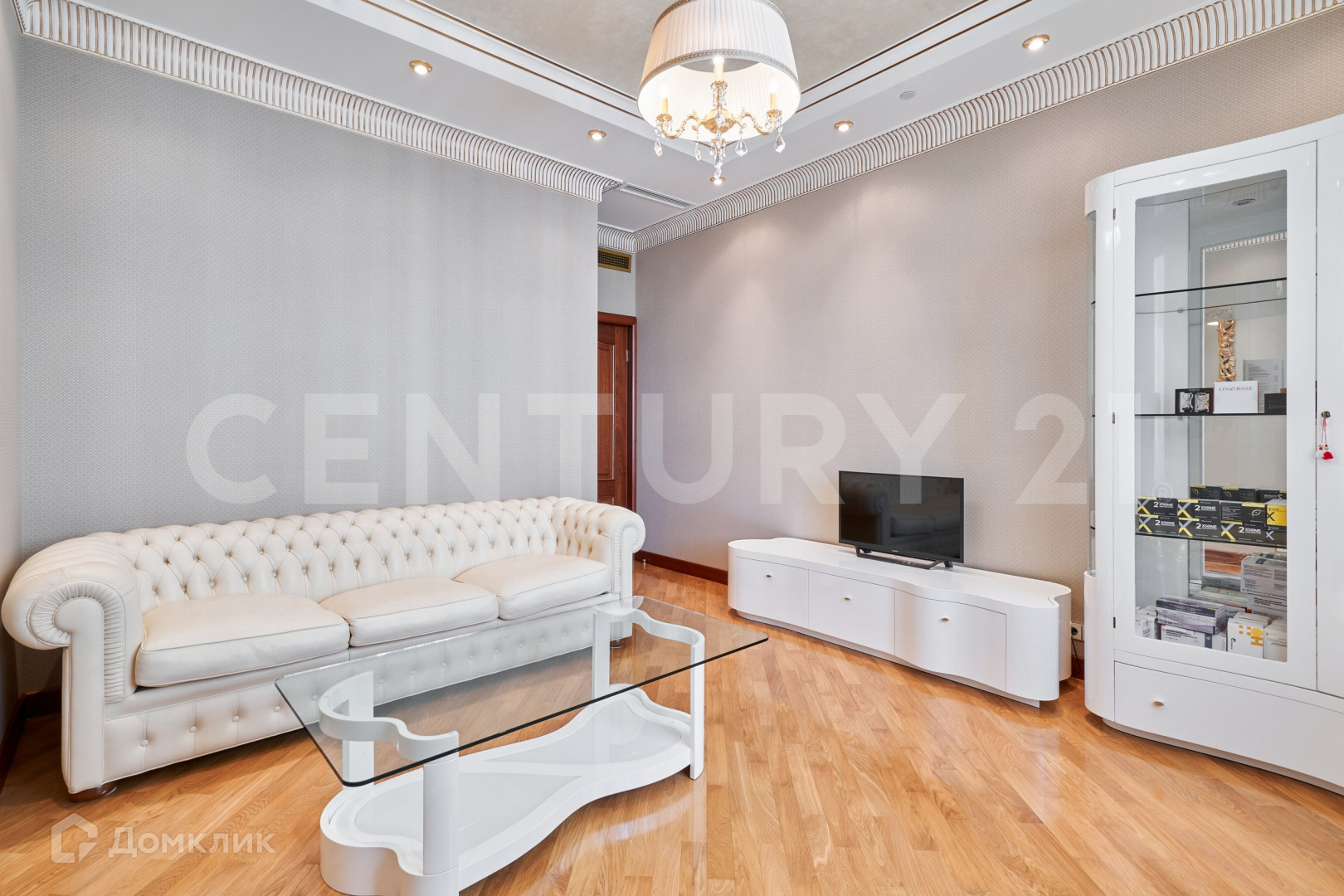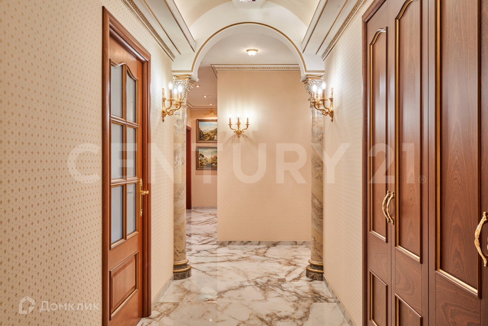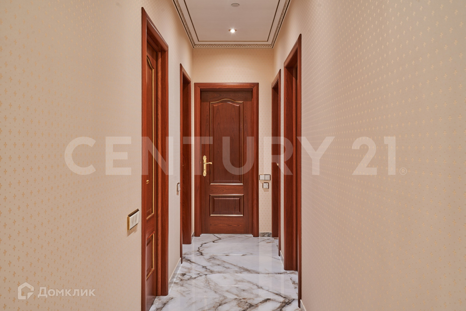 В безупречной отделке использованы высококлассные материалы, включающие гипсовую лепнину, позолоту, наборный дубовый паркет, натуральный камень (мрамор, гранит), бесшовные текстильные обои. При пошиве штор использованы натуральный шелк и бархат. Полная комплектация мебелью и предметами интерьера. Теле и ауди системы High-End класса Bang&Olufsen расположены по всей квартире и подключенные к центральному серверу.