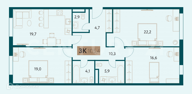 Общая площадь 105.4 м2