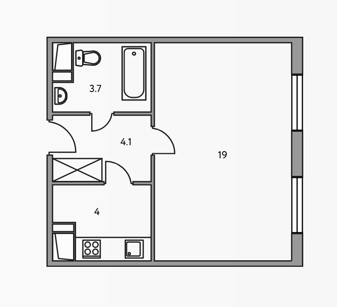 Общая площадь 30.8 м2