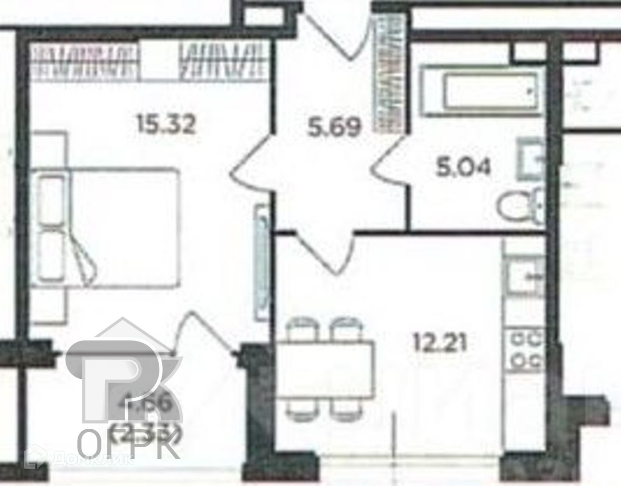 Жилая площадь 15.3 м2