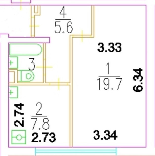 Жилая площадь 19.7 м2