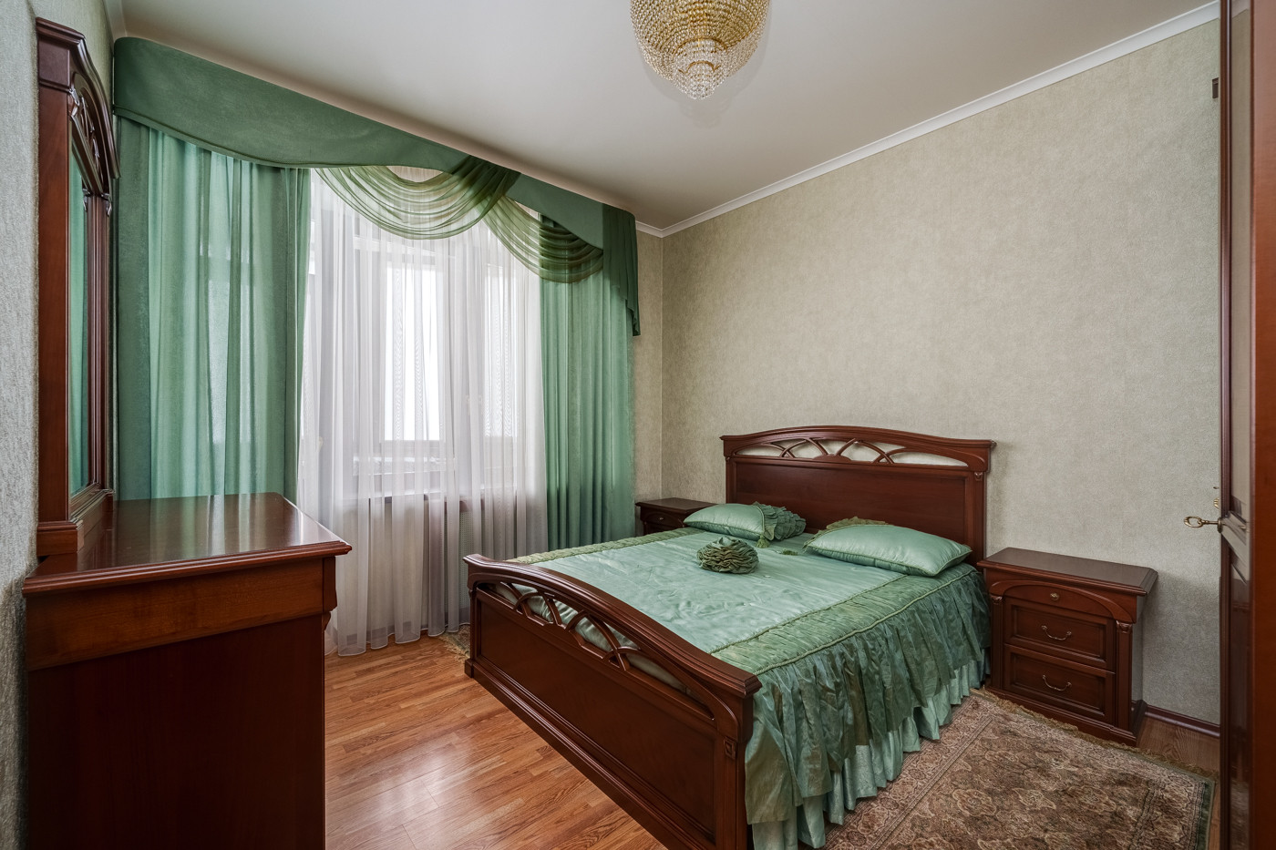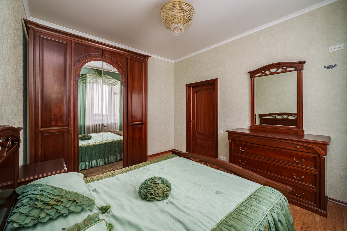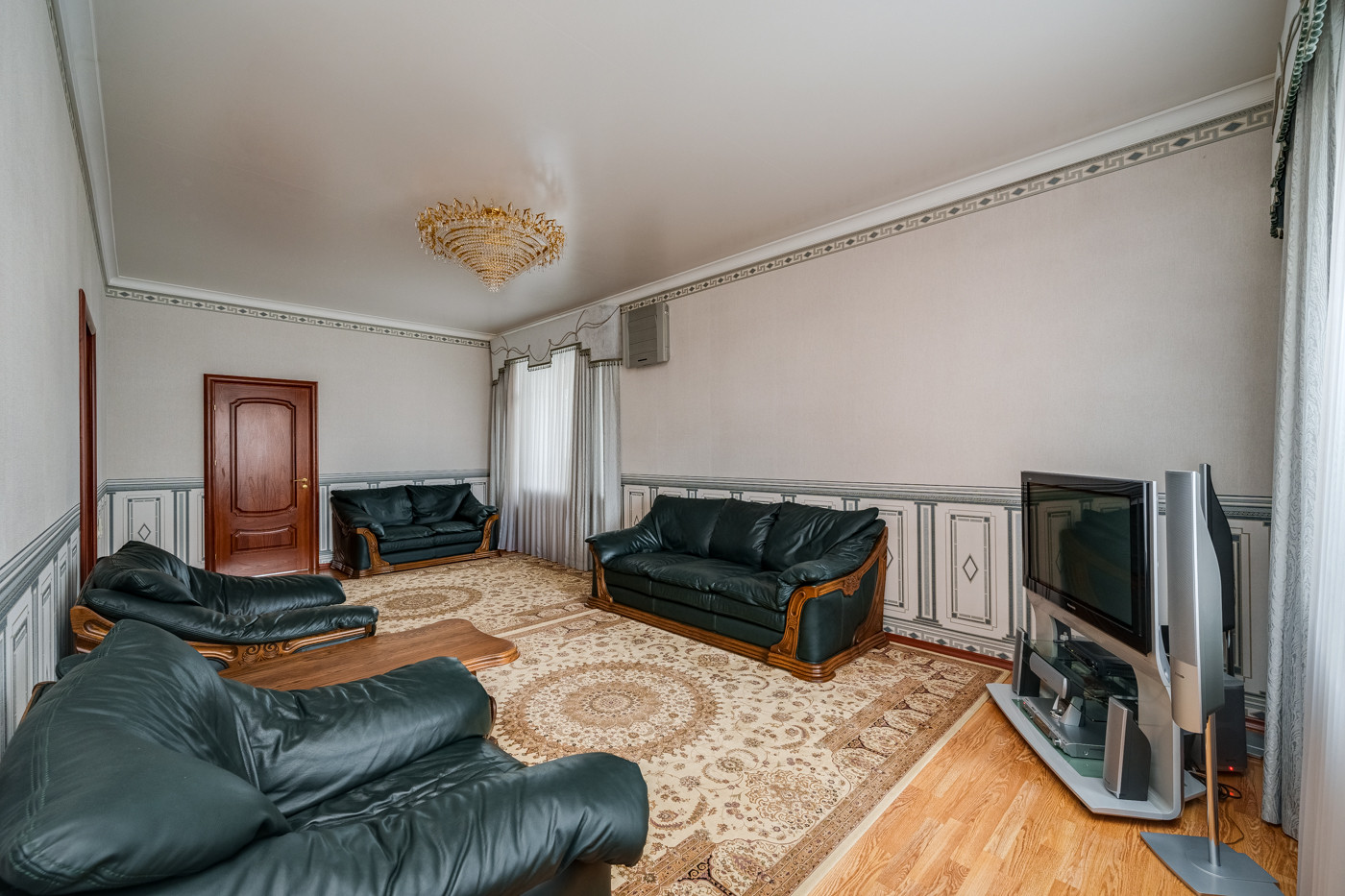 В квартире Выполнен качественный ремонт в классическом стиле. Высокие потолки 3 метра
