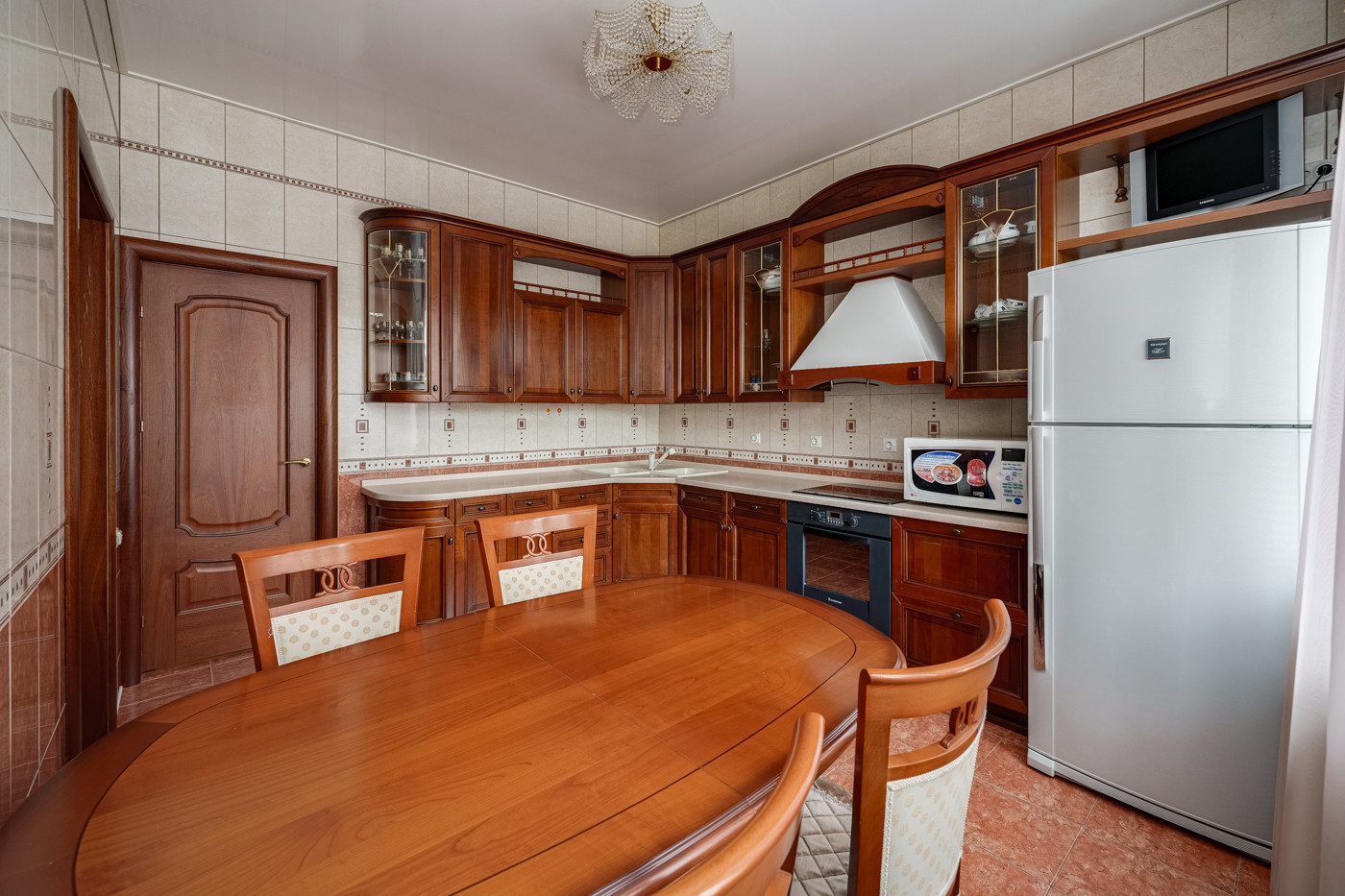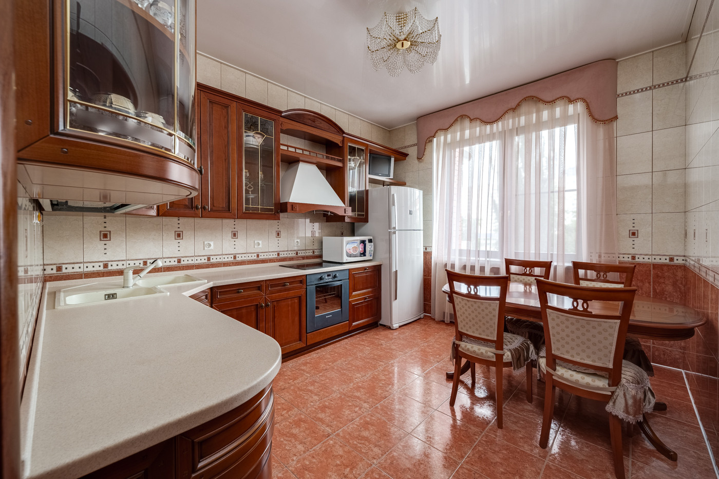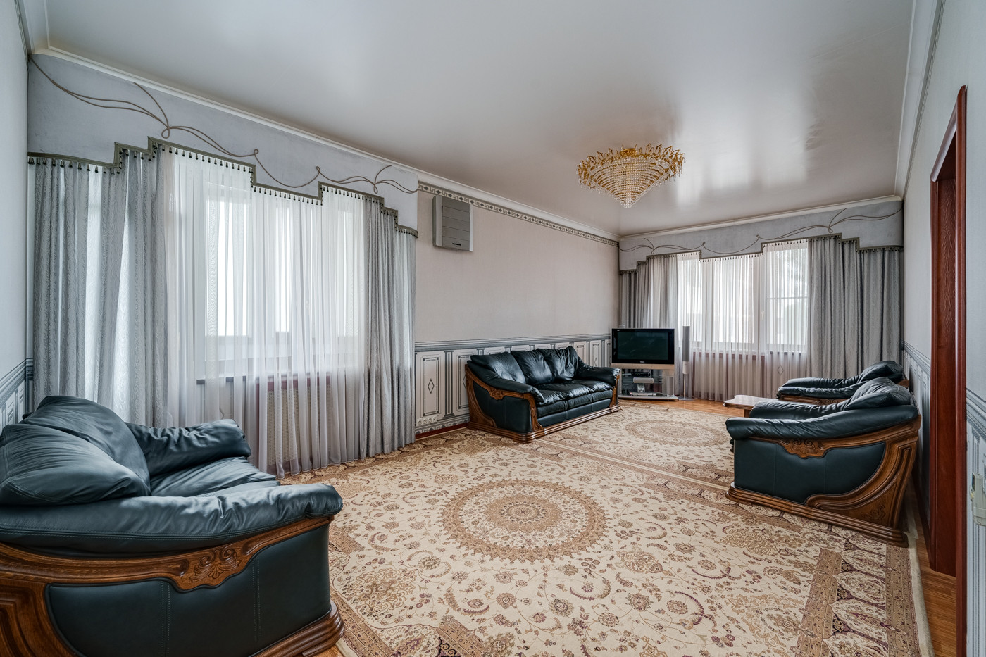 В квартире Выполнен качественный ремонт в классическом стиле. Высокие потолки 3 метра