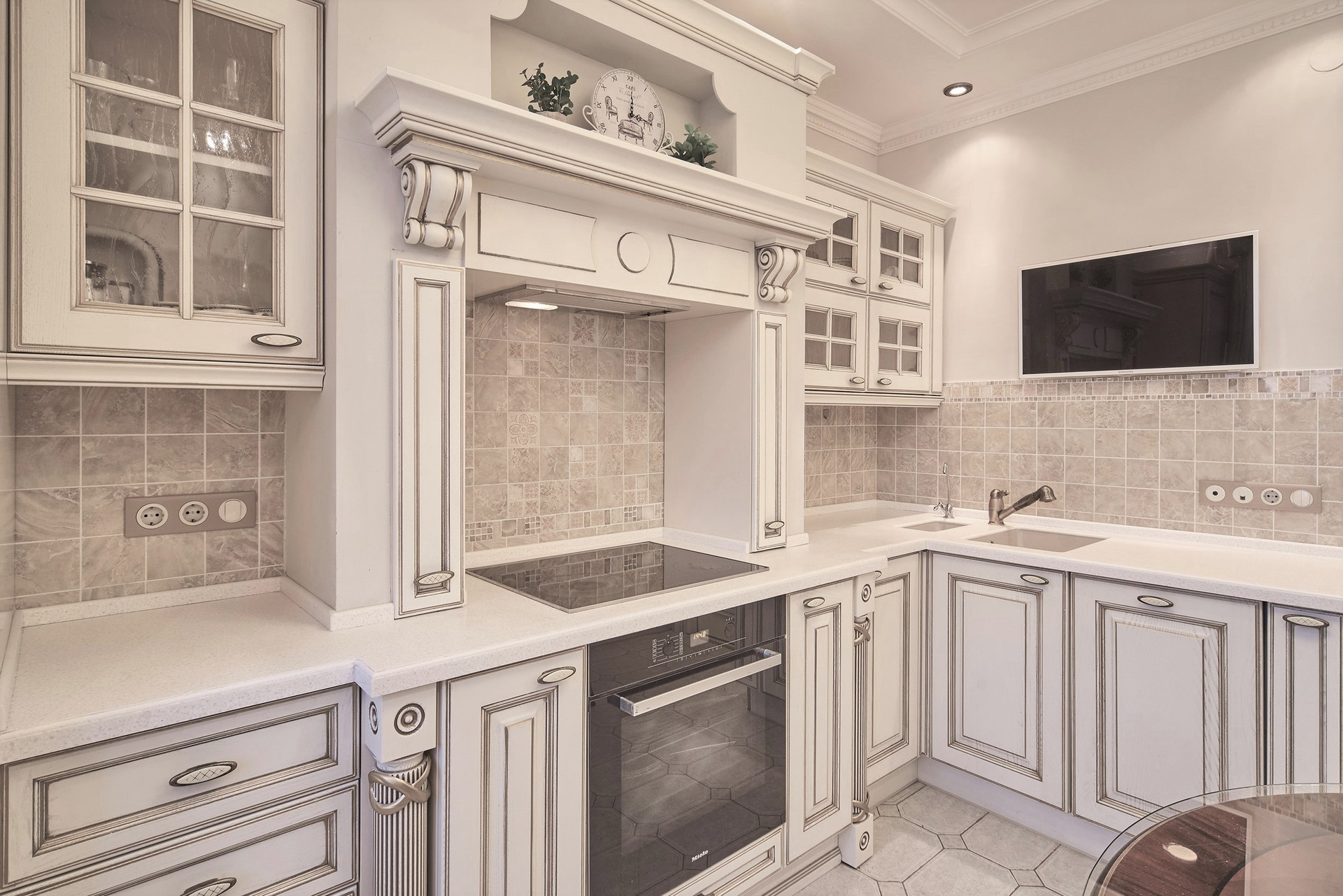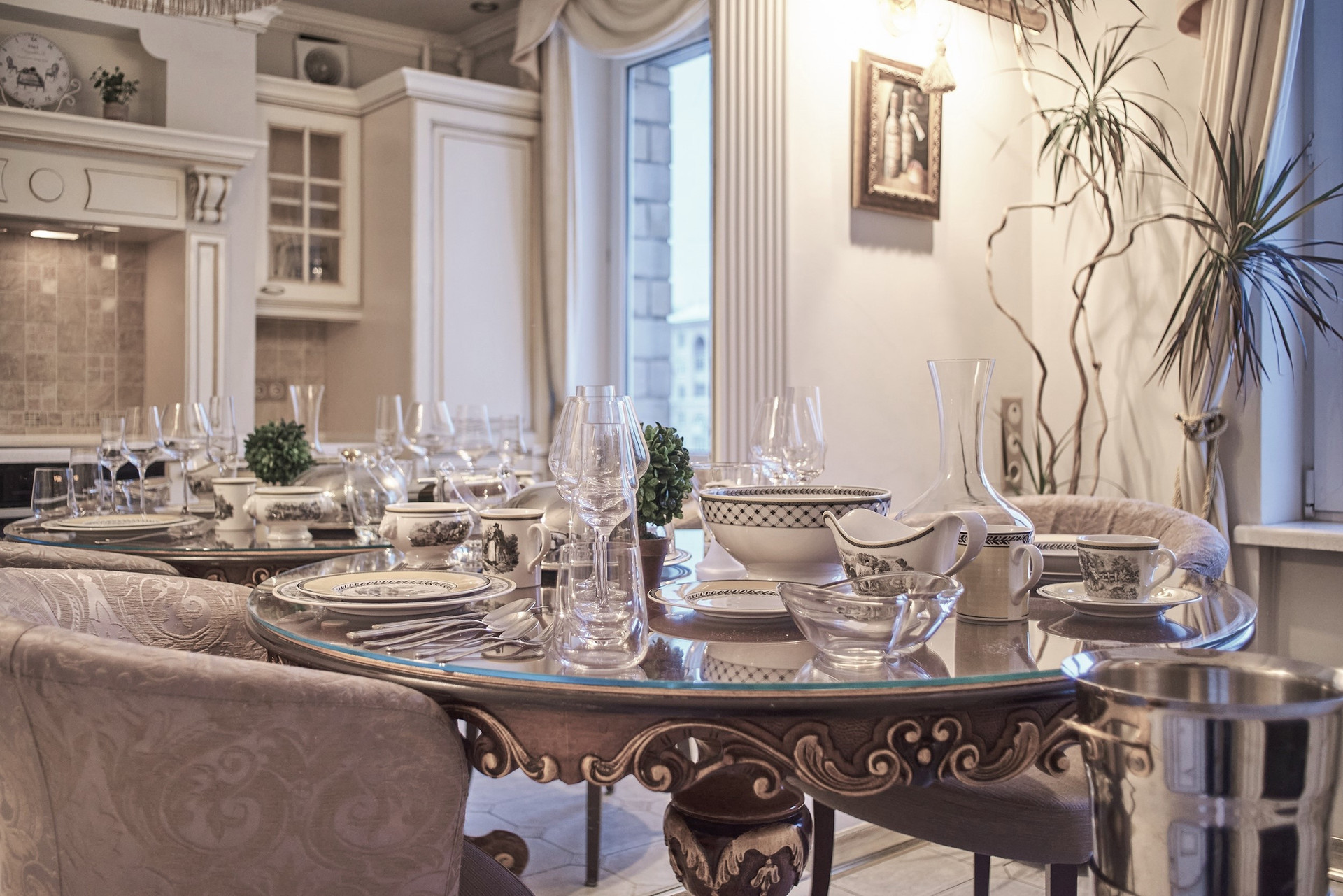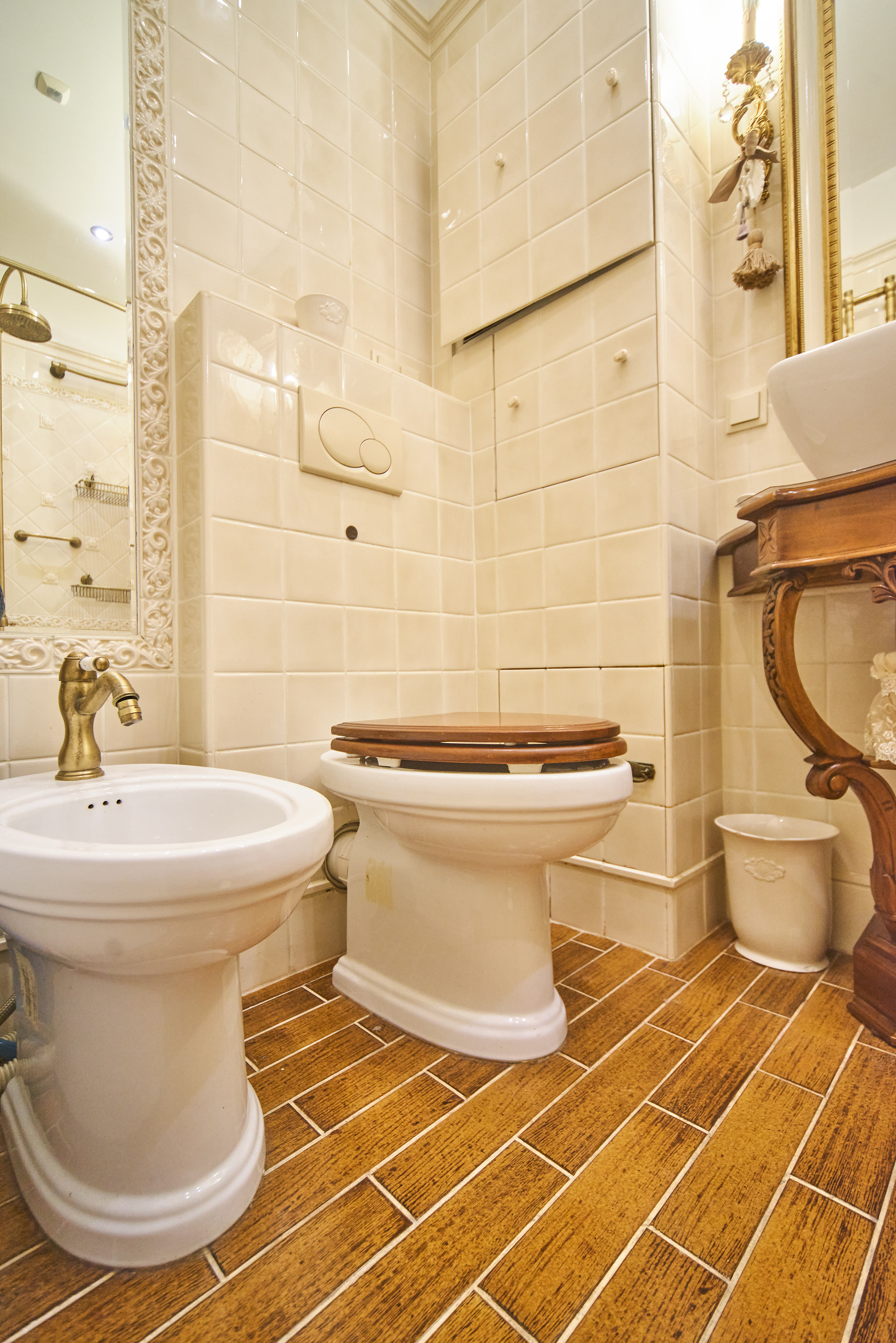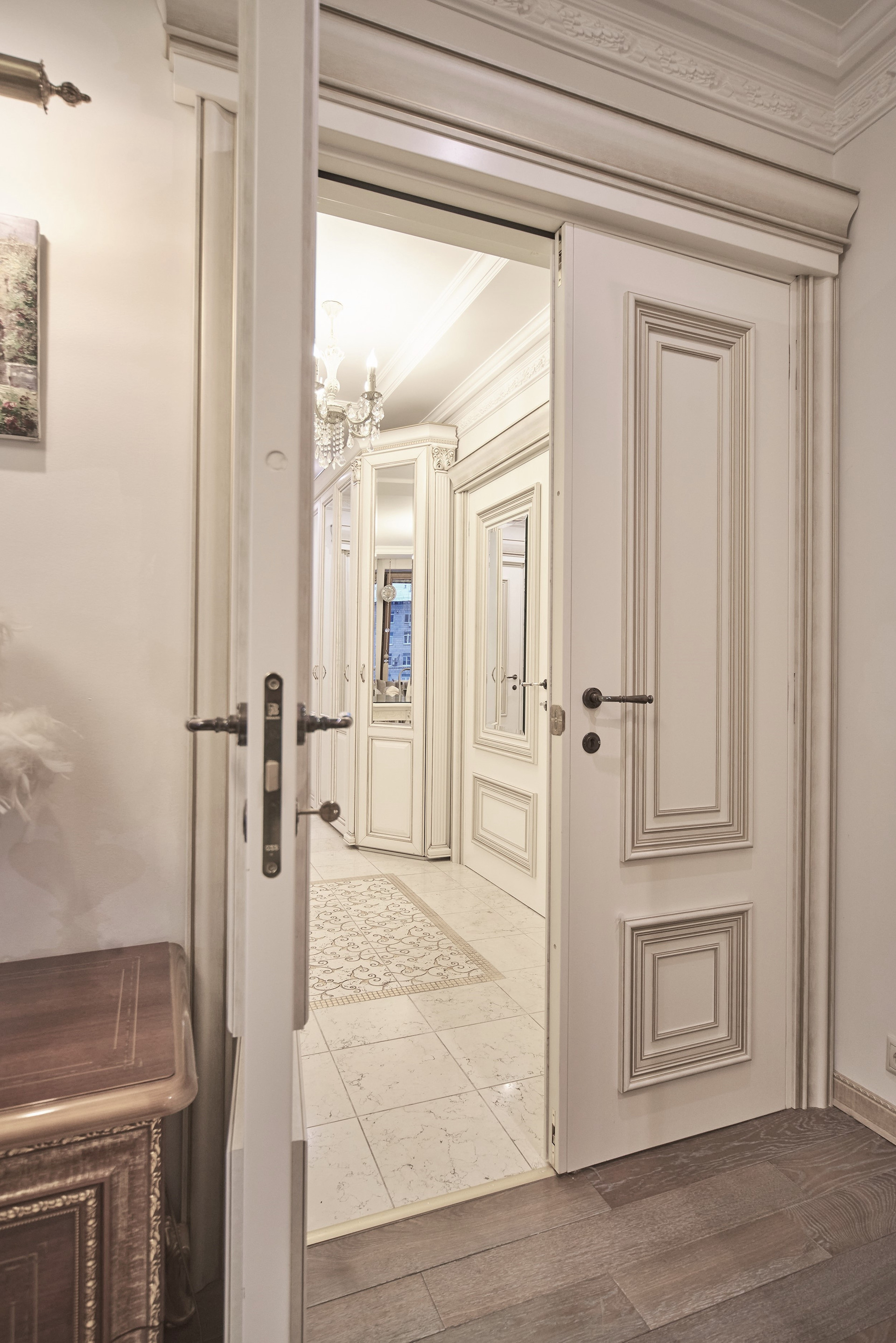 Окна - деревянные стеклопакеты немецкого производителя, полы - патинированный дуб. Сантехника Villeroy & Boch. Мебель Antonelli Moravio и прочих ведущих итальянских брендов. Приятные опции в виде туалетного стола с подсветкой, кровать Super King size - более 2Х2м, дорогой ортопедический матрац, гипоаллергенное белье. Бытовая техника ведущих производителей: варочная стекло керамическая панель Miele, духовой шкаф и стиральная машина Miele, посудомоечная машина и холодильник Bosch, чайник Bork, пылесос. Кондиционеры Daikin с функцией увлажнения, охлаждения, нагрева и ионизации воздуха. Дверные ручки – серебро 950*, мозаика 24 каратное золото. Комфортная рабочая зона с письменным столом. Кабельное телевидение 700 каналов, высокоскоростной интернет, домофон и видео наблюдение в подъезде и на этаже.