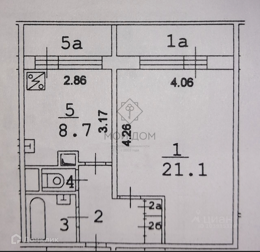 Общая площадь 39.4 м2