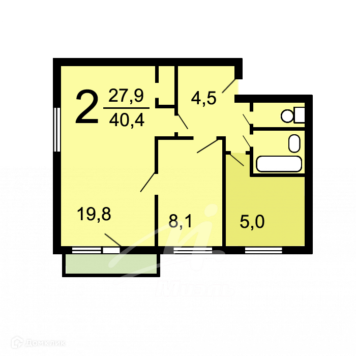 Общая площадь 40.4 м2