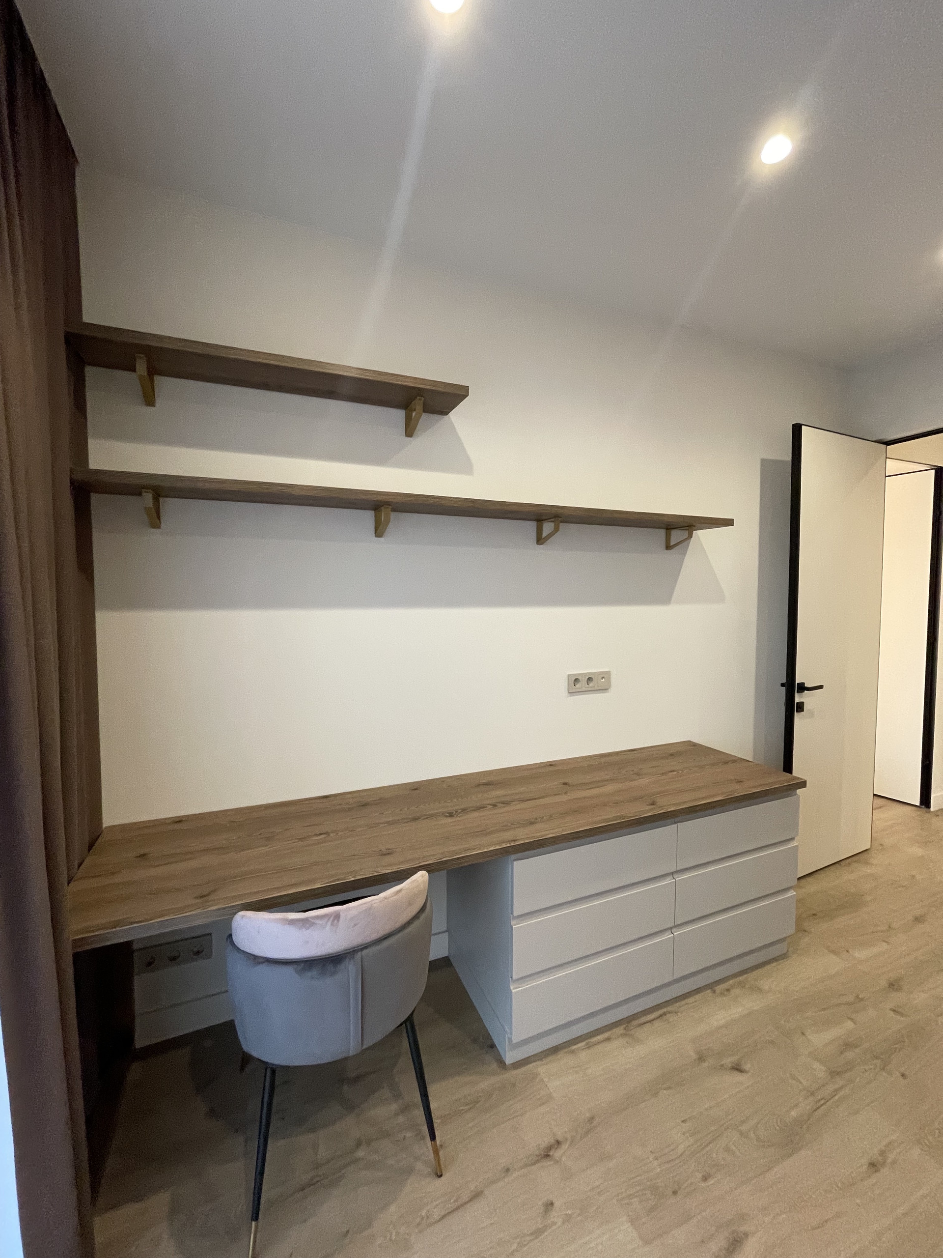 Функциональная планировка включает в себя 2 полноценные спальни, кухня гостиная и 2 гардероба.