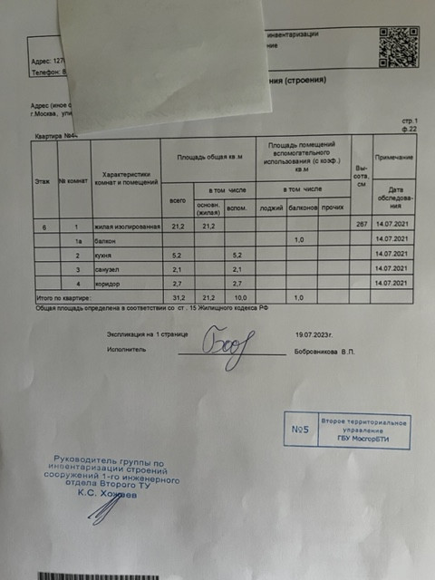 Общая площадь 31.2 м2
