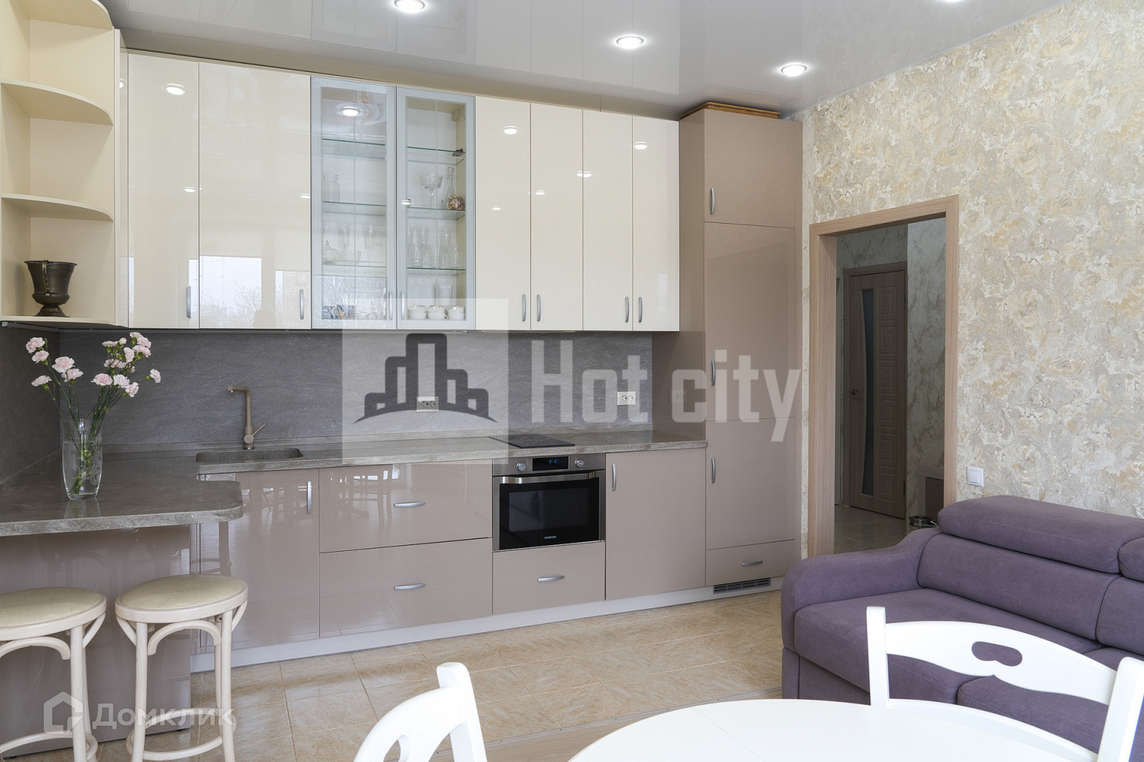 При разработке дизайн – проекта квартиры было учтено удобное расположение зон для работы и отдыха и эргономичное расположение мест хранения и бытовой техники. Мебель в квартире выполнена по индивидуальному проекту на заказ и остается в квартире. При входе в квартиру расположена вместительная гардеробная комната с полками и штангами. В квартире большой совмещенный санузел 7,3 м², который можно оборудовать по Вашему желанию. В зоне кухни, в прихожей и в санузле полы с подогревом.