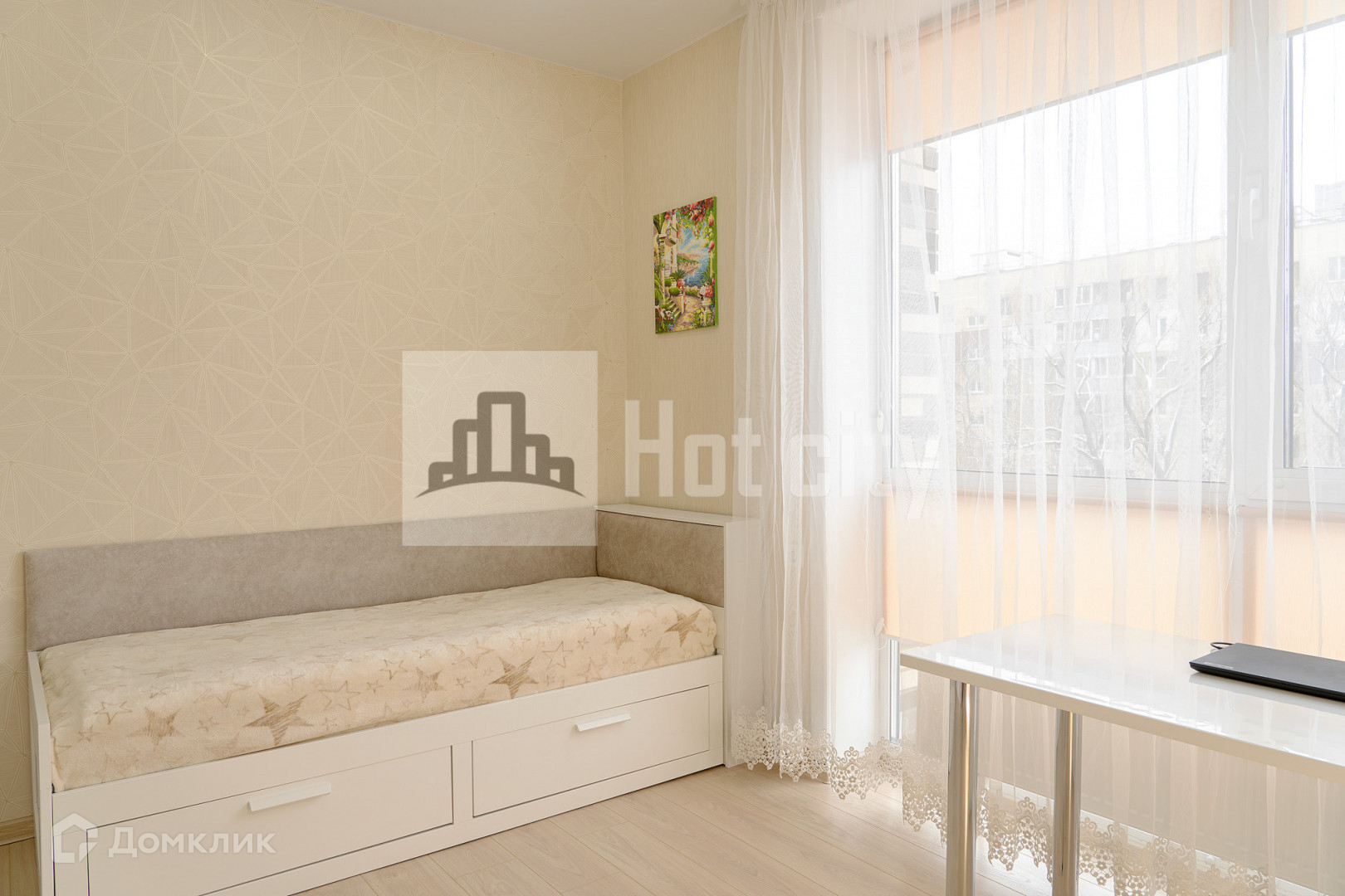 Квартира продается с бытовой техникой и мебелью: кухня-гостиная 17,5 м², спальня 13,2 м², гардеробная комната 3,5 м², прихожая 6,1 м², совмещенный санузел 7,3 м². Из окон квартиры вид на сквер