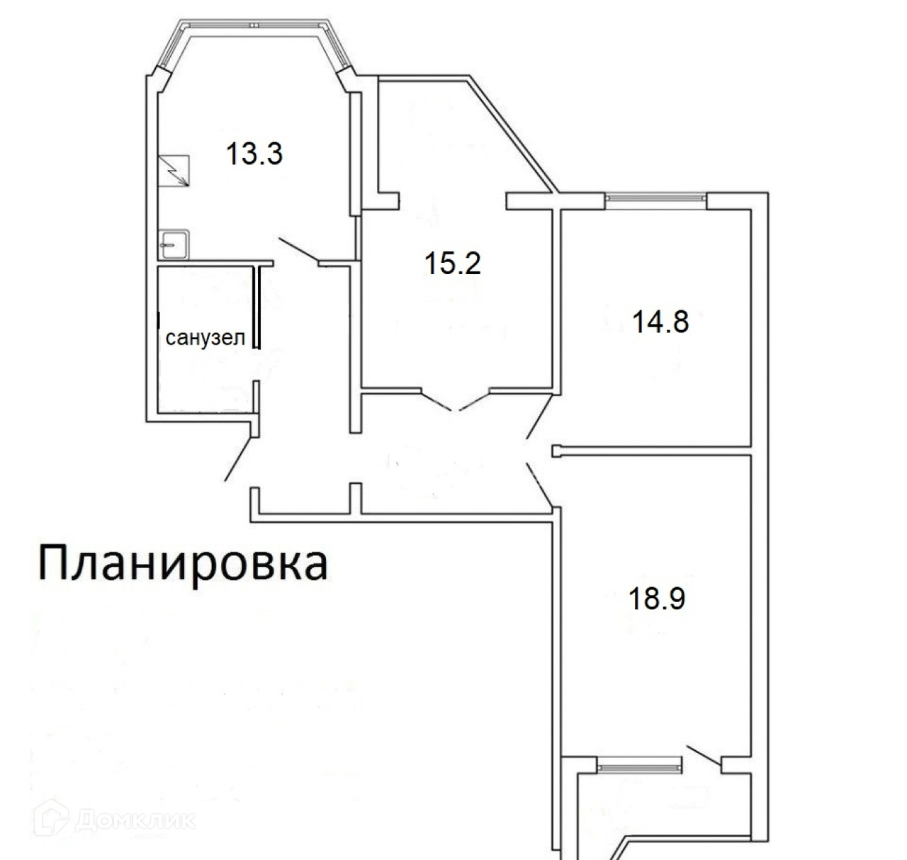 Жилая площадь 48.9 м2