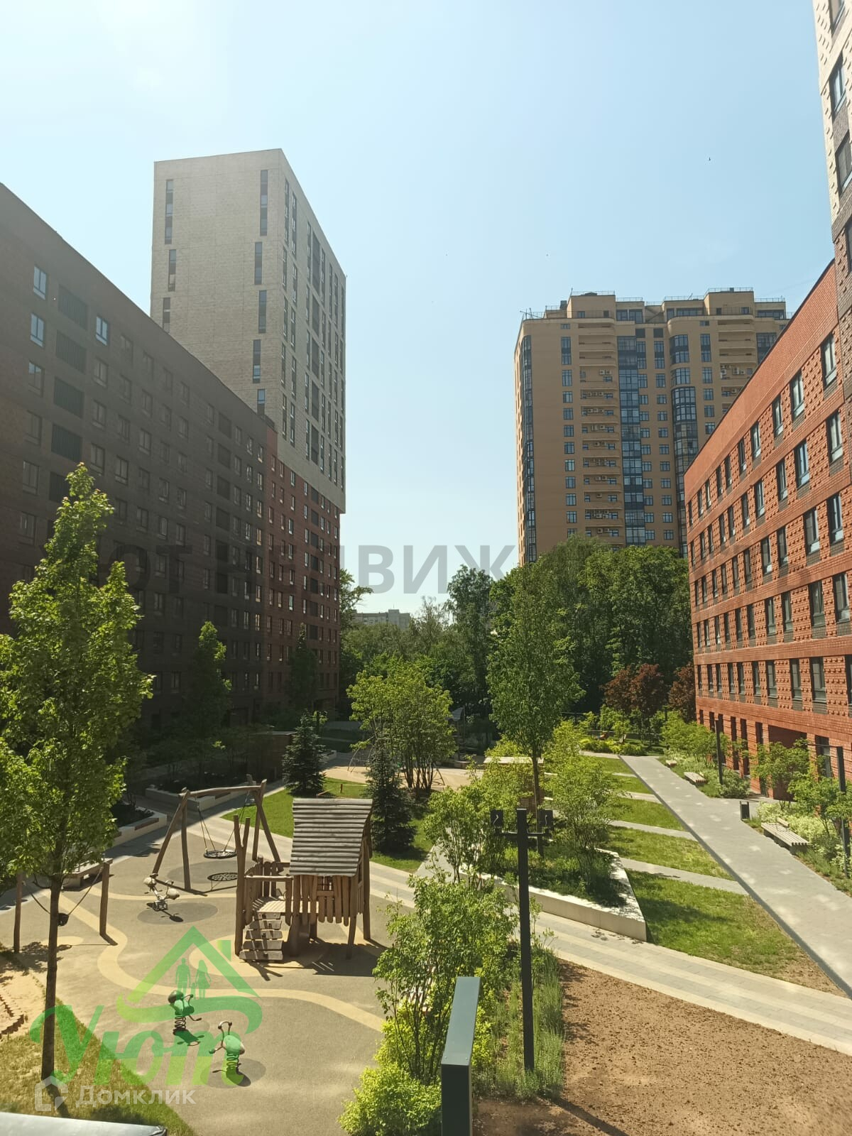 На территории ЖК безопасные игровые площадки с прорезиненным покрытием, спортплощадки и лаунж-зоны. Озеленение включает газоны и зеленые насаждения. Между домами организованы пешеходные дорожки.