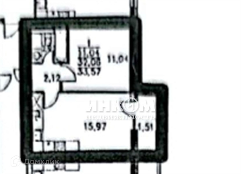 Общая площадь 33.5 м2