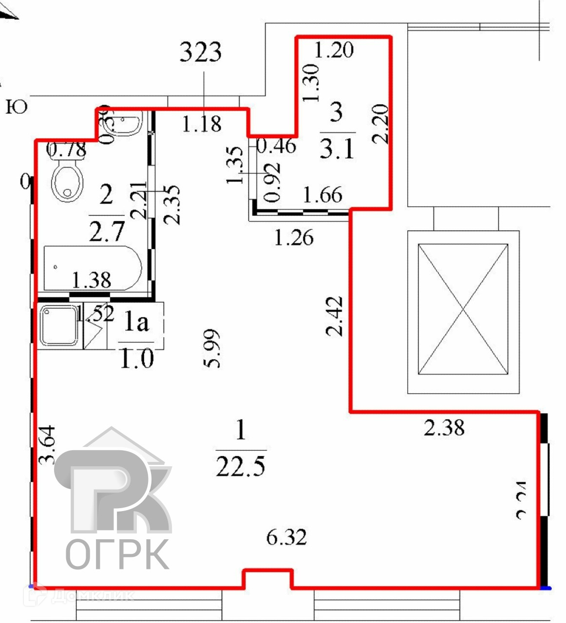 Общая площадь 29.3 м2