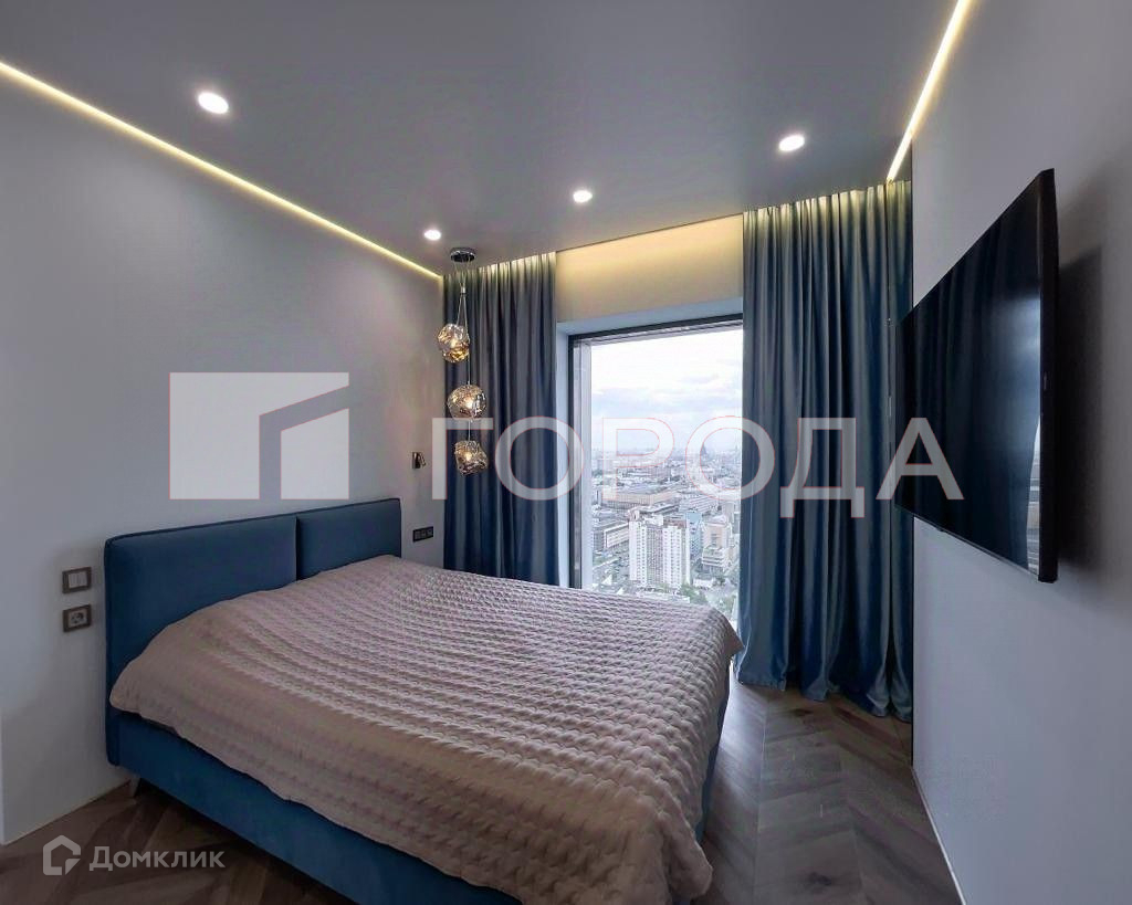 Просторная квартира с новым дизайнерским ремонтом и панорамными окнами, которые открывают вид на центр Москвы: Кремль, Новый Арбат, МГУ и Москва-Сити.