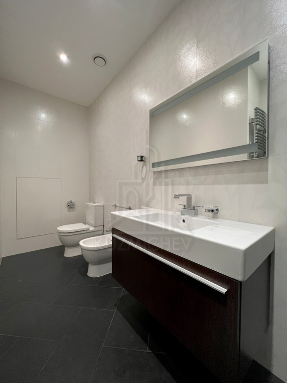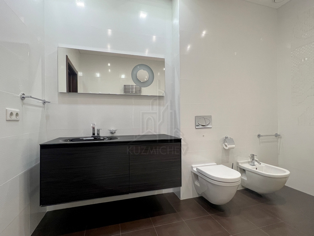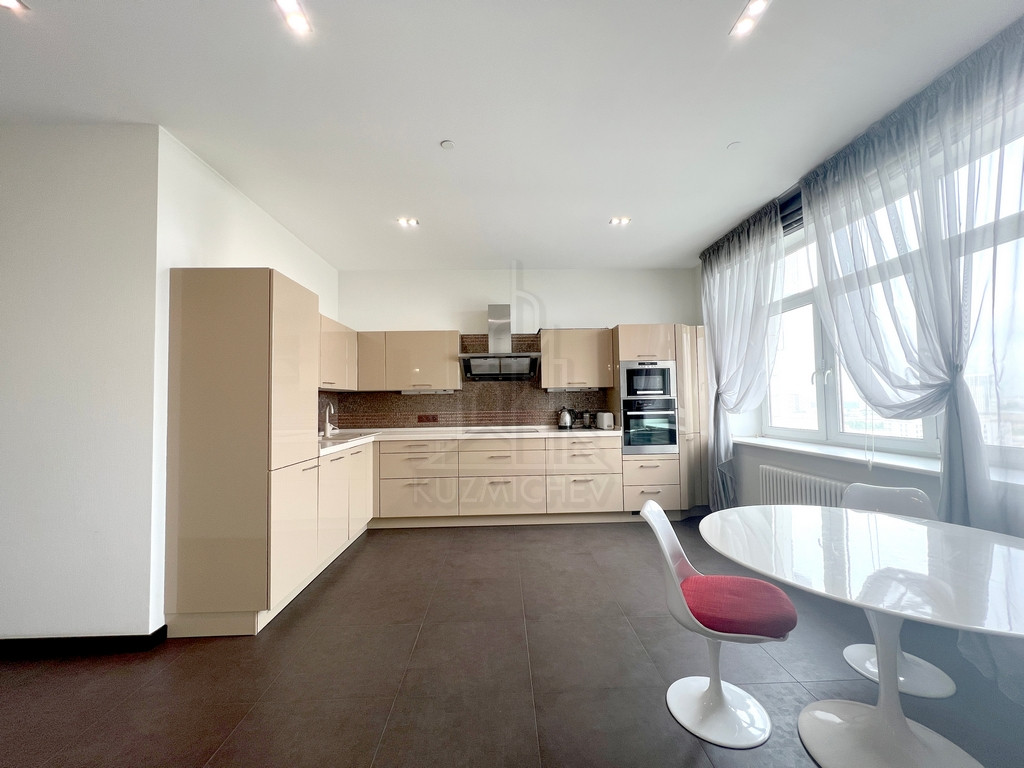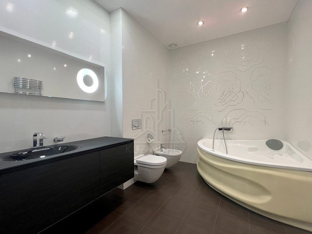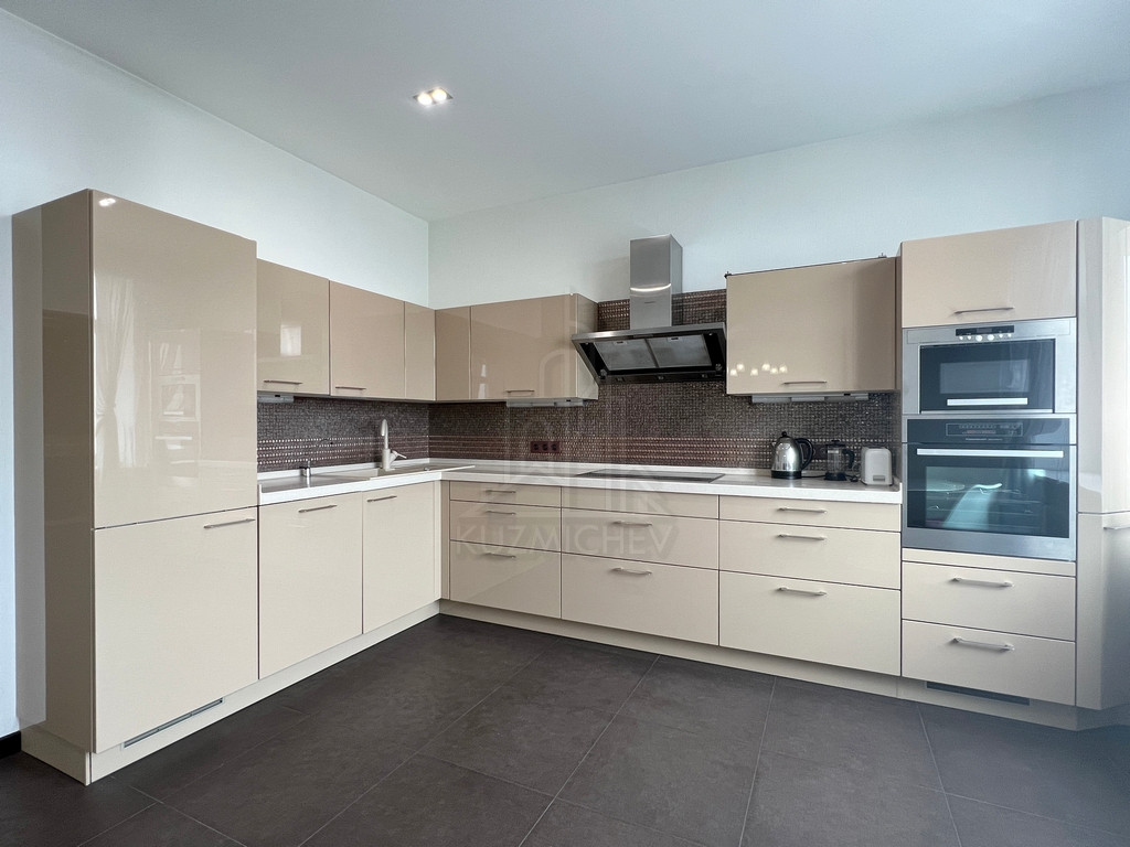 Квартира меблирована дорогой встроенной мебелью и качественной бытовой техникой премиальных брендов, включая, но не ограничиваясь: Кухонный гарнитур ALNO (Германия), встроенная кухонная техника Kuppersbusch (Германия), Диван Ligne Rose Germany (Sinna France), Шкаф в прихожей и гардеробная комната Hulsta (Германия), Сантехника Duravit и Antonio Luppi, Душ-сауна Jacuzzi, Стиральная и сушильные машины Bosch (Германия), Паркет массив 16 мм Орех Лаурел, Люстры и светильники SLV (Германия), Розетки-выключатели Legrand Франция, Пол и стены керамогранитная плитка (Италия), Полы с электрическим подогревом, Кондиционеры Panasonic (inverter), Радиаторы отопления и электро полотенцесушители Arbonia (оригинал), Ванна Novotek (Финляндия).