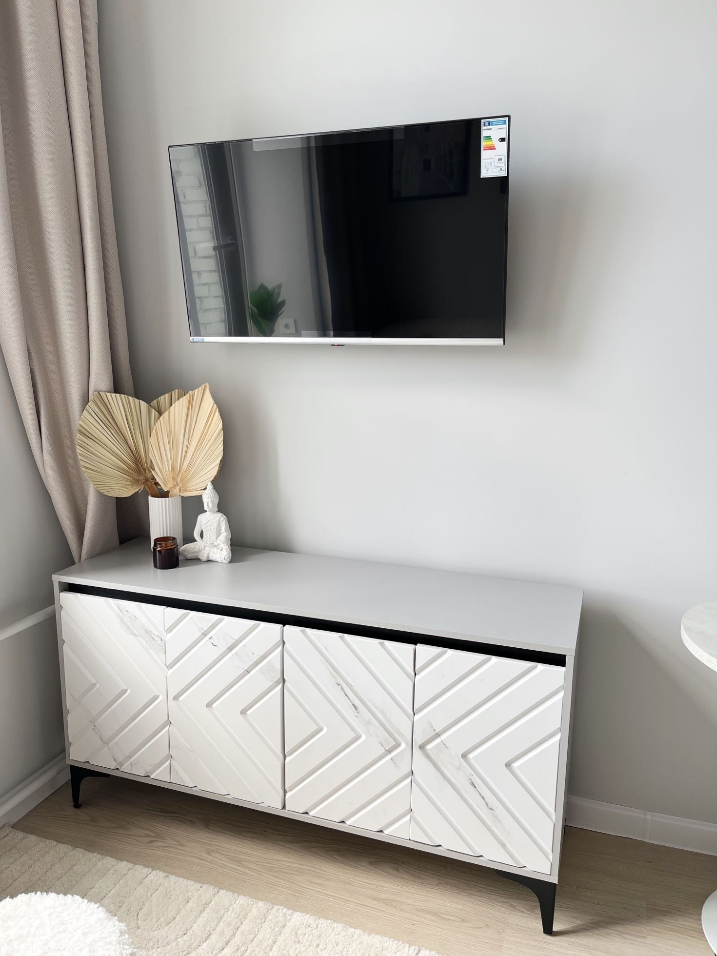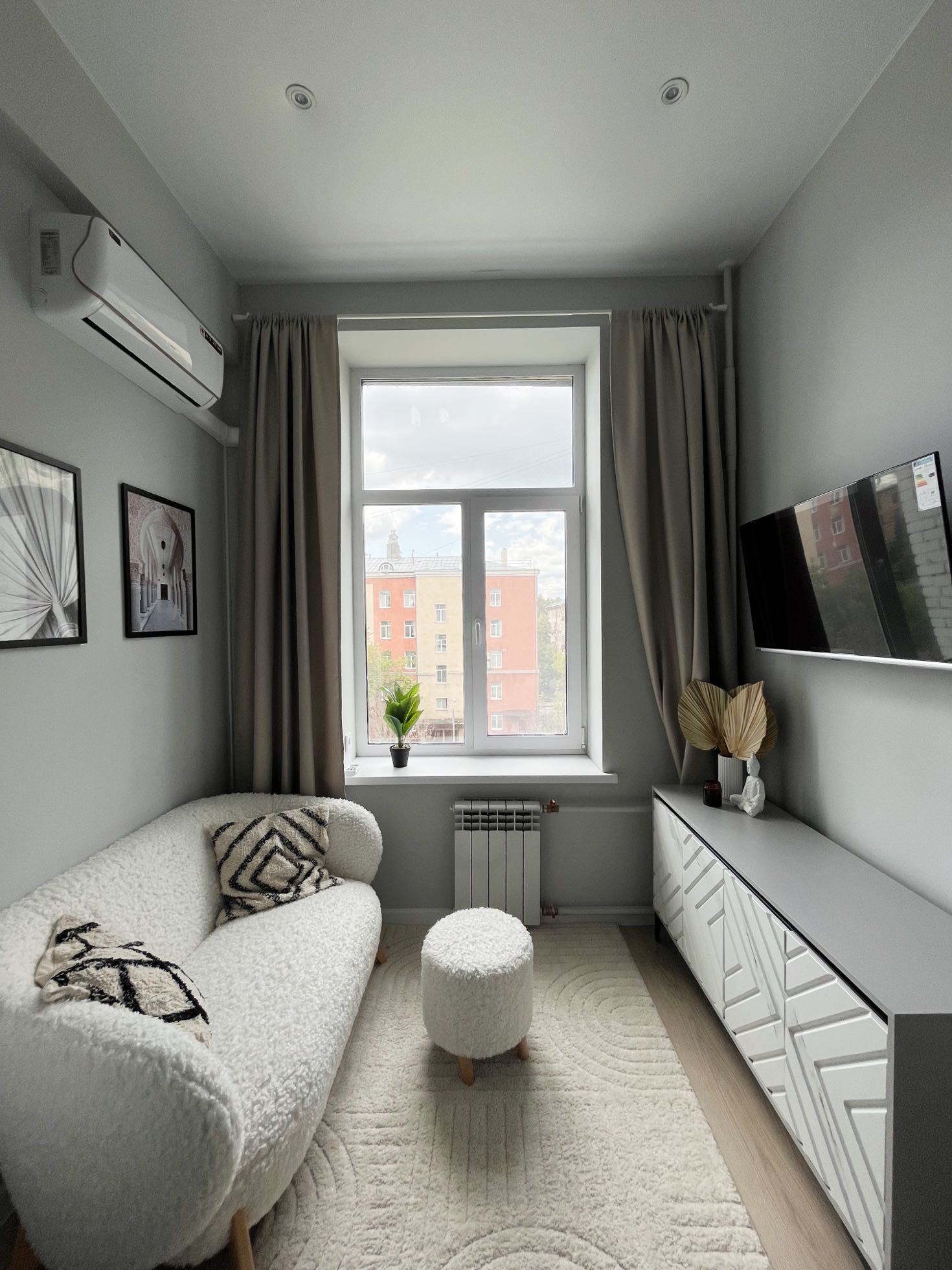 Есть кондиционер, полноценный холодильник, телевизор 43 дюйма, стиральная машина, полотенцесушитесь, фильтр для воды.