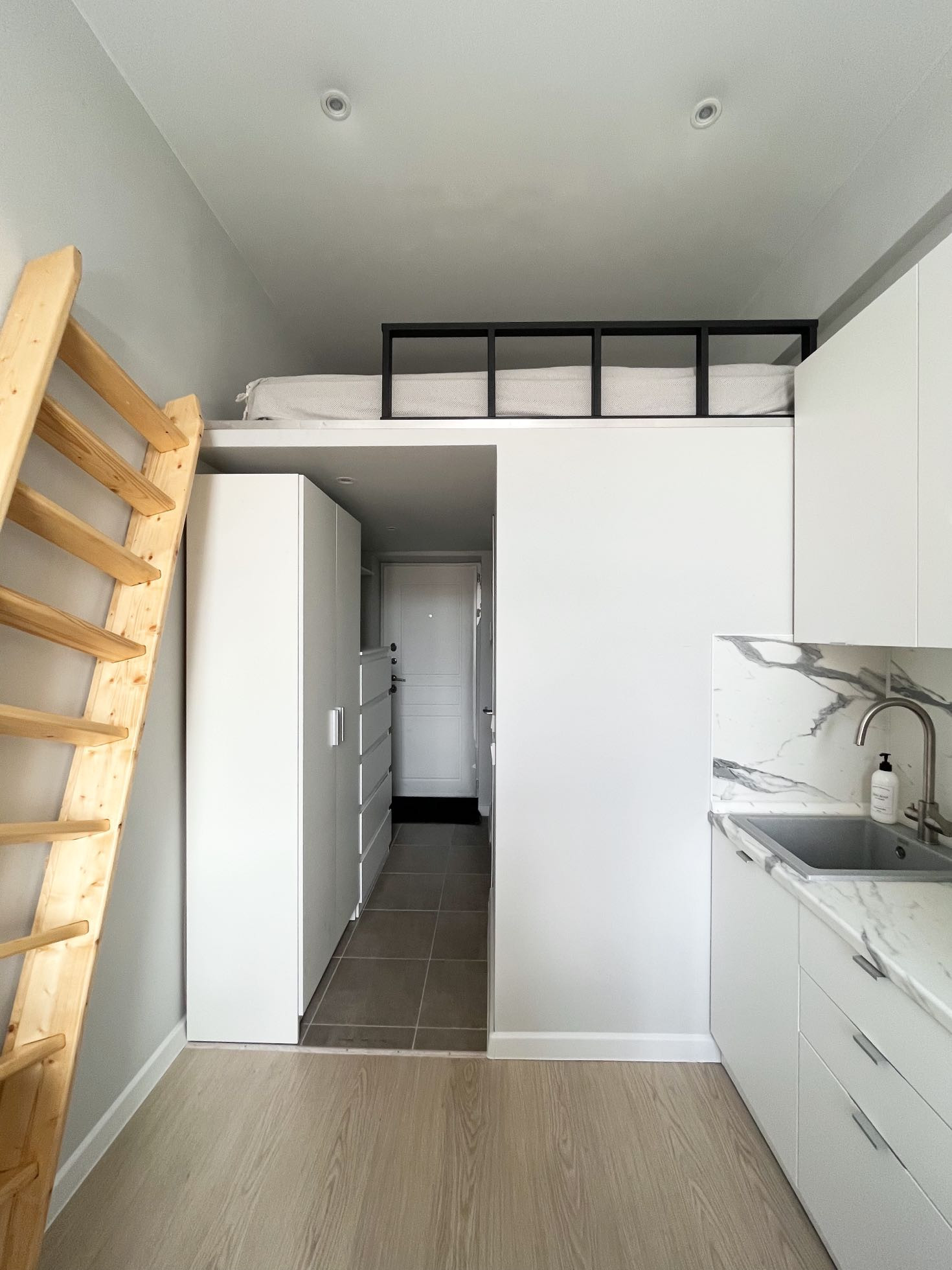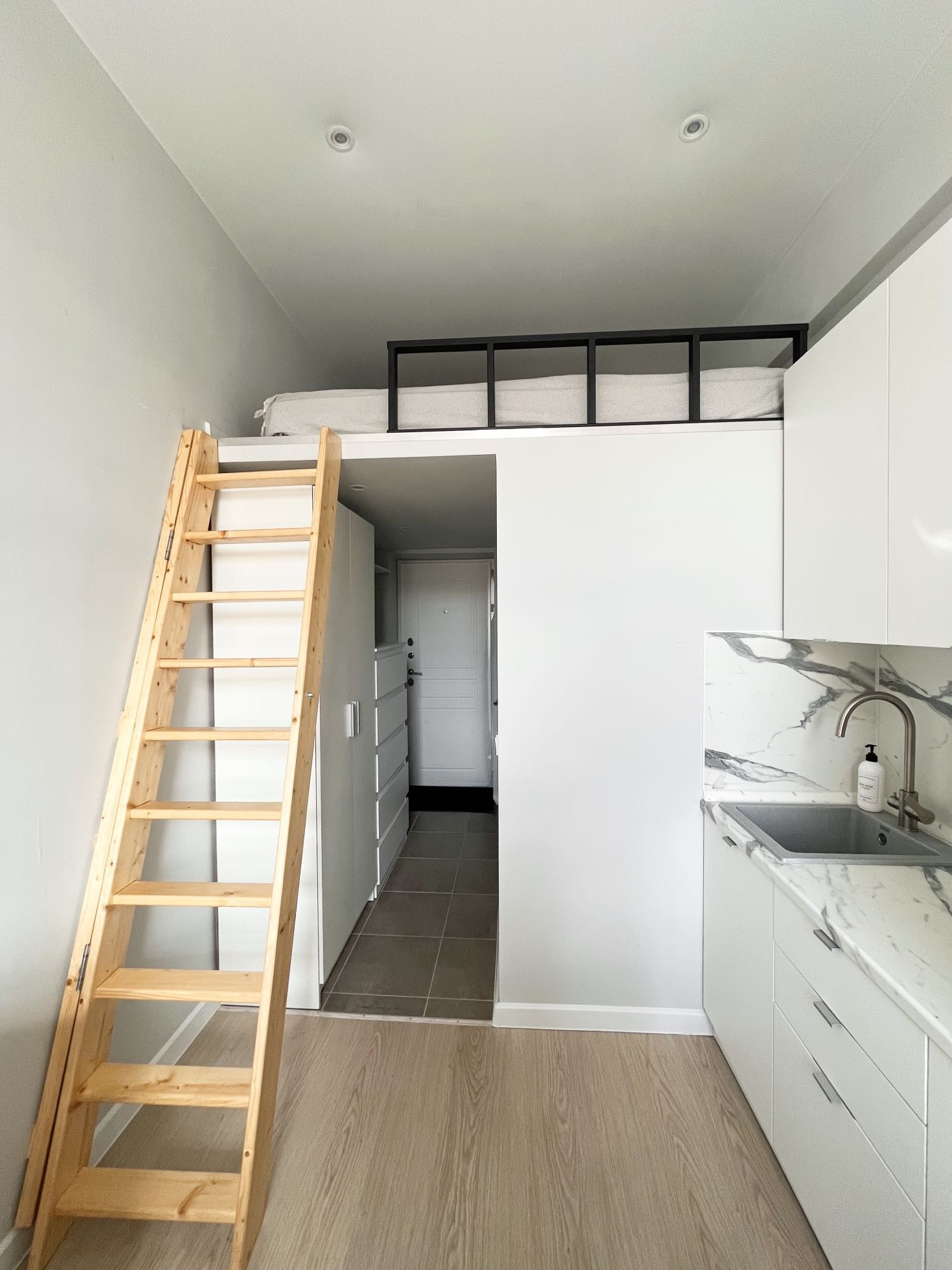 Апартаменты. На первом этаже расположена кухня и гостиная.