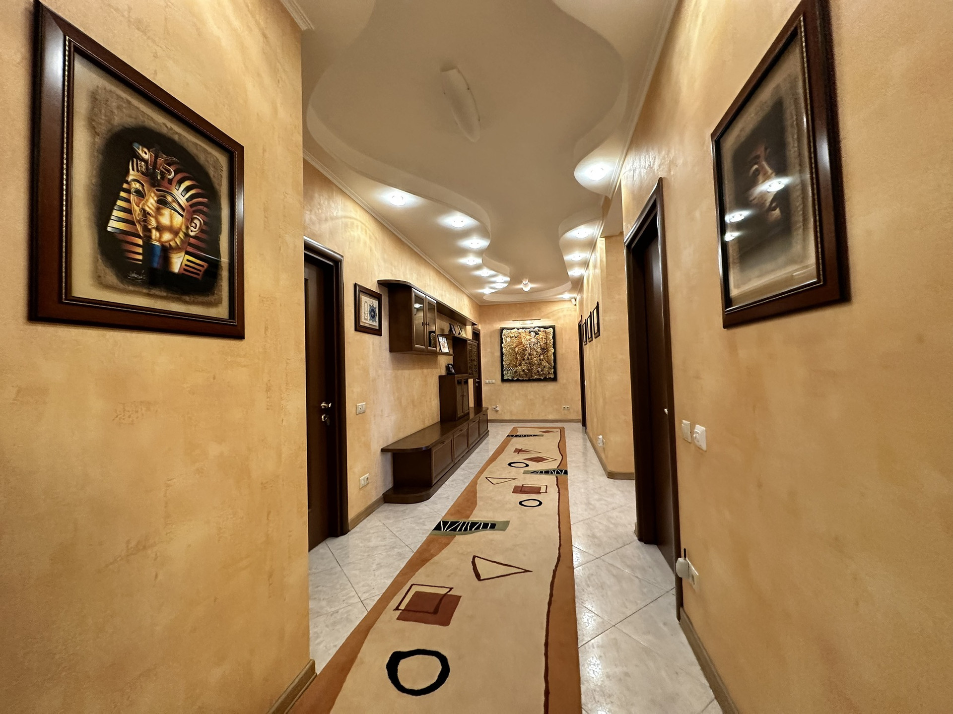 Планировка: прихожая, большая гостиная с кухней, обеденная зона, 3 спальни с санузлами и гардеробными, прачечная и др.