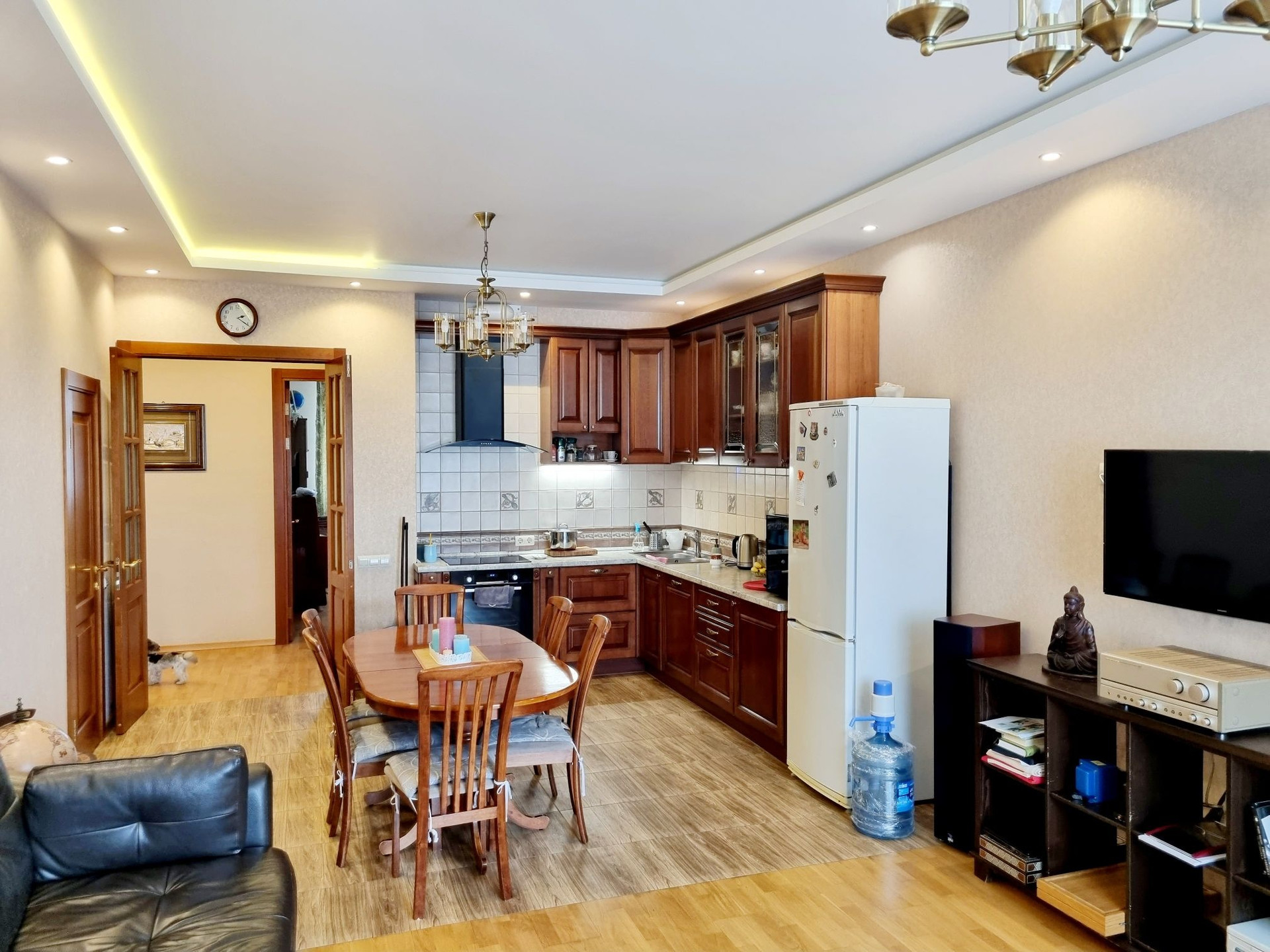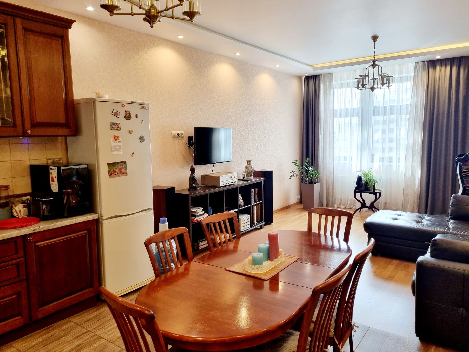 Жк Донской Олимп , 4-х комнатная квартира  с просторной кухней-гостинной общей площадью 128 м2, с  мебелью и евро ремонтом в классическом стиле! Планировка : прихожая, коридор, 4 спальни, 2 гардеробные, лоджия, большая кухня-гостинная, 2 с/у.