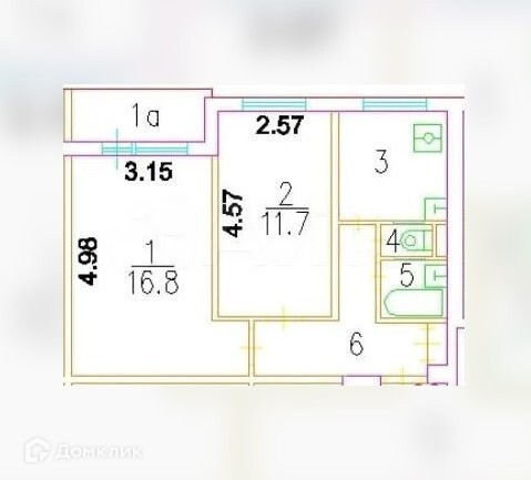 Изолированные комнаты 11,7 м2 и 16,8 м2, просторный совмещенный с/у.