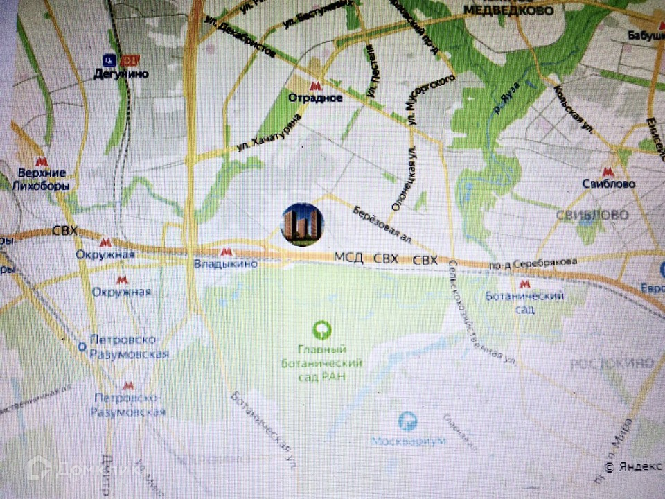 Удобная транспортная доступность. До метро Владыкино 10-15 минут пешком. До центра на общественном транспорте можно добраться за 35-40 минут. Для владельцев авто удобный выезд на СВХ и Алтуфьевское шоссе. В ближайшем окружении работают школы, детские сады, поликлиники, магазины, фитнес-клубы, гипермаркет "Ашан". Также в пешем доступе находятся крупные торговые центры, такие как "Парк Хаус" и "Алтуфьевский", внутри которого есть кинотеатр "Алмаз".