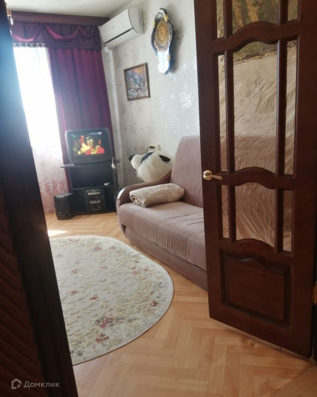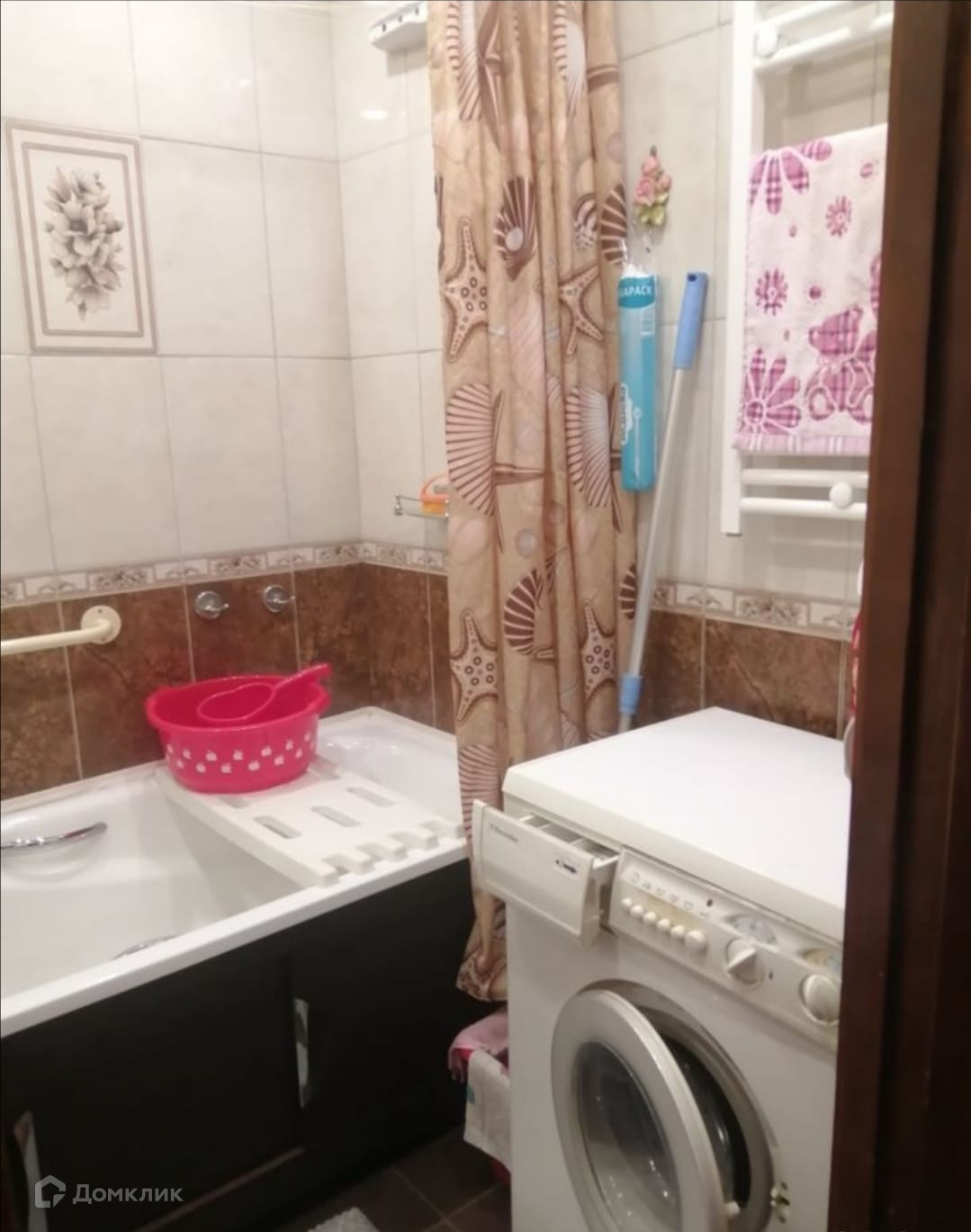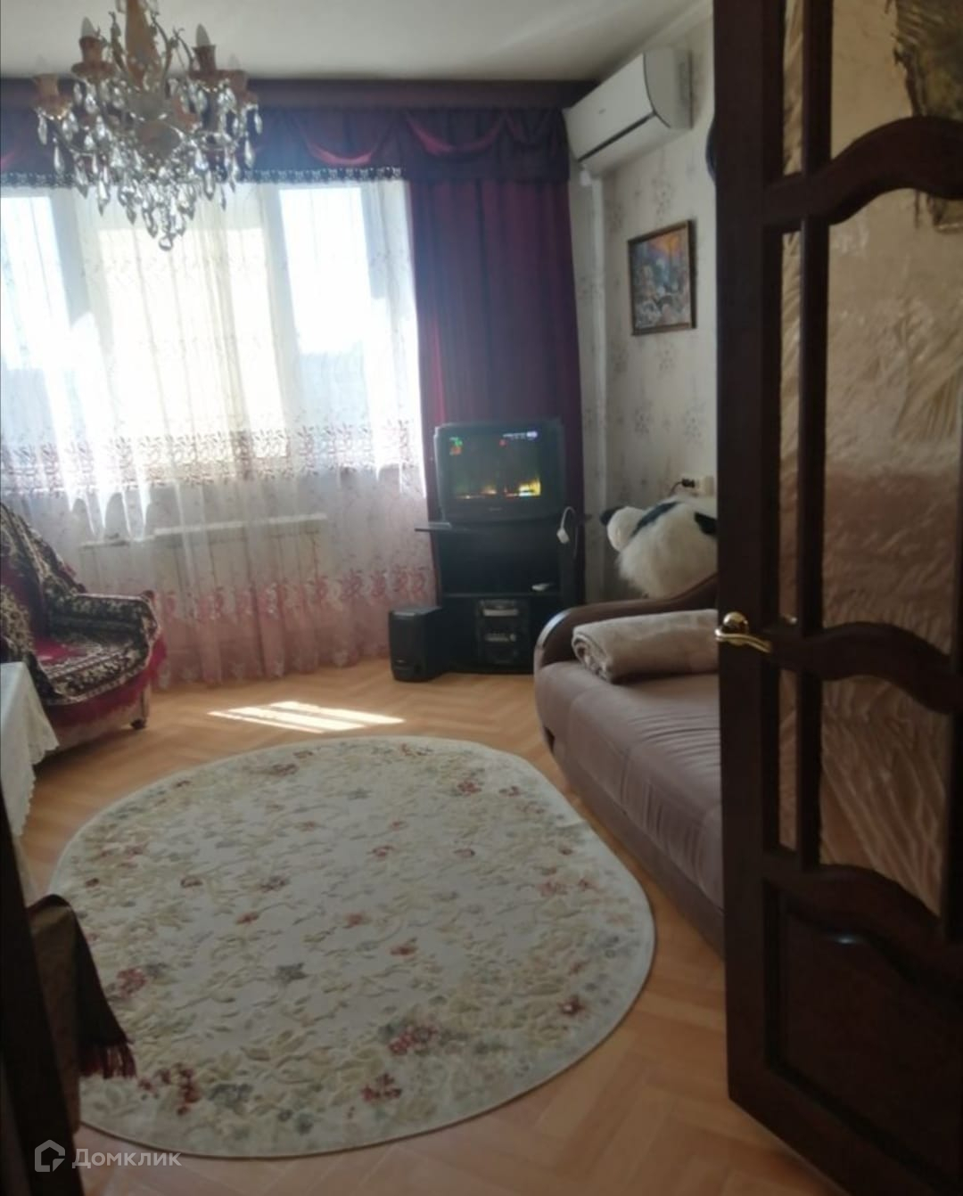 Есть застеклённая лоджия и установлен кондиционер. Мебель и техника остаются, кроме стиральной машинки и холодильника.