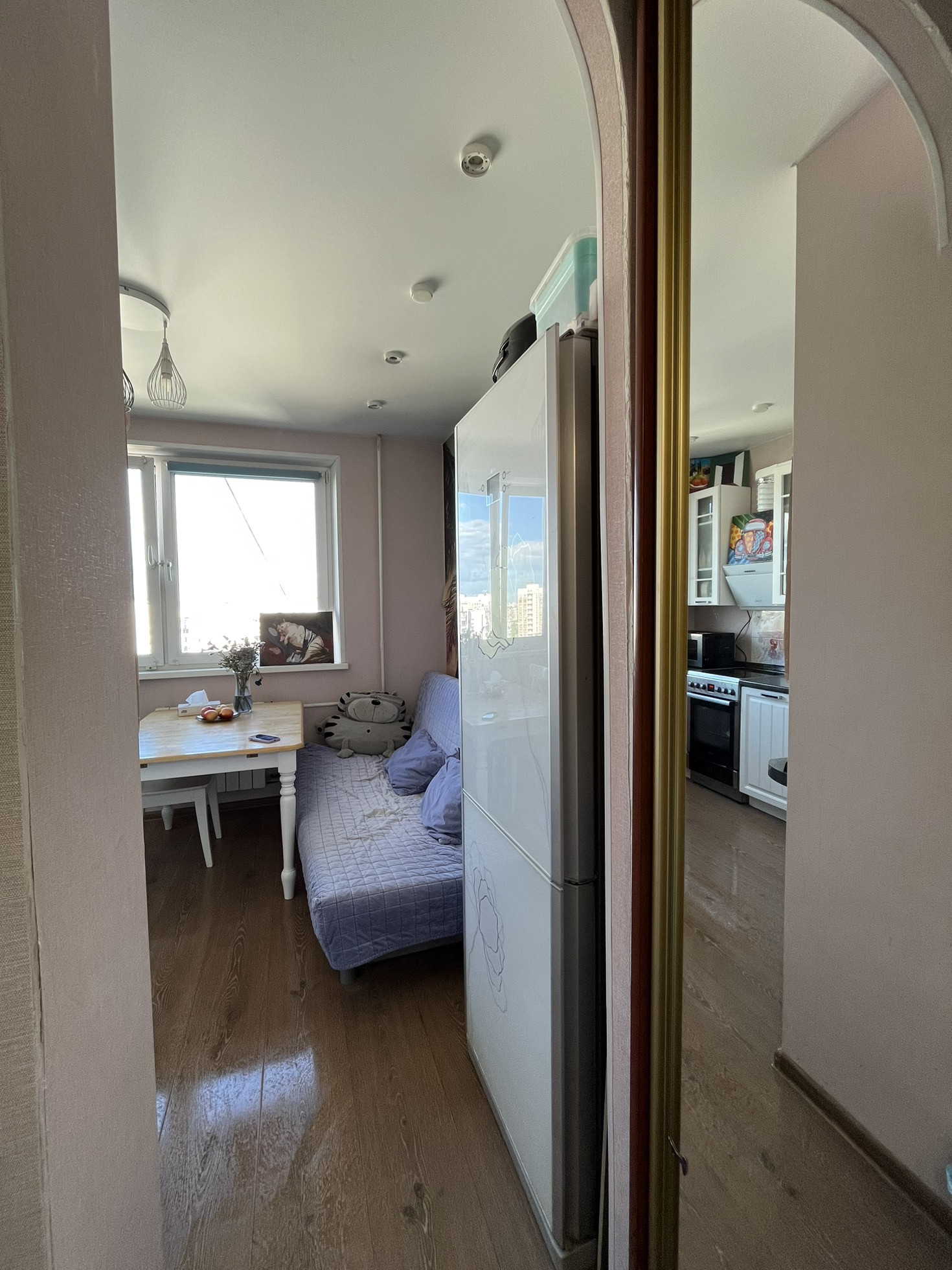 Просторная 3-комнатная квартира в отличном состоянии. 3 благоустроенные изолированные комнаты, остекленный балкон 4 кв. м, вместительная кухня и раздельный с/у. С момента постройки дома квартирой владеет одна семья.