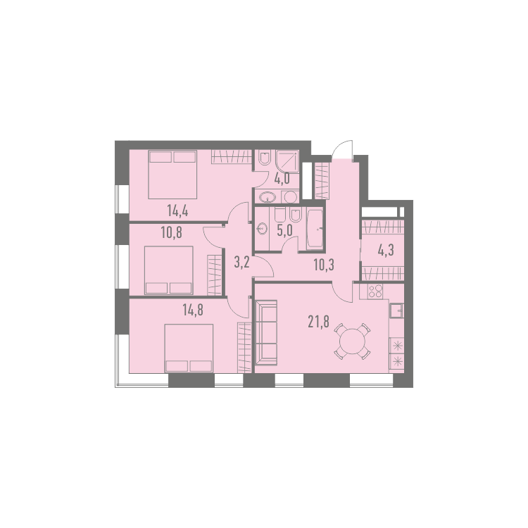 Площадь кухни 21.8 м2