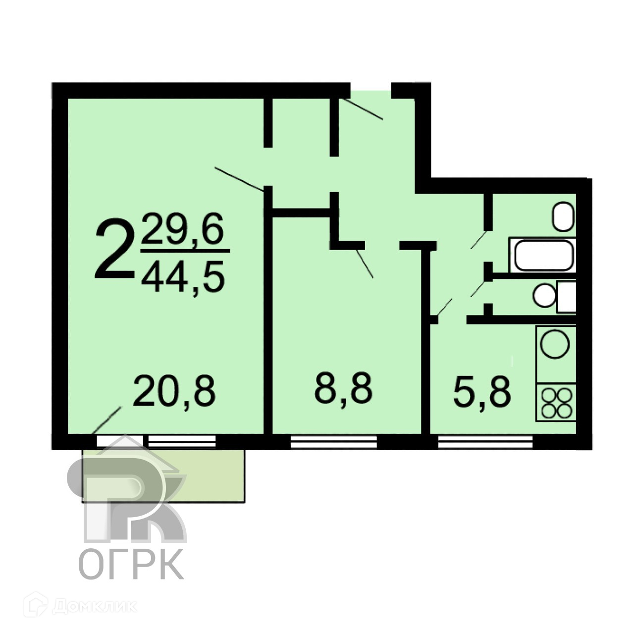 Общая площадь 44 м2