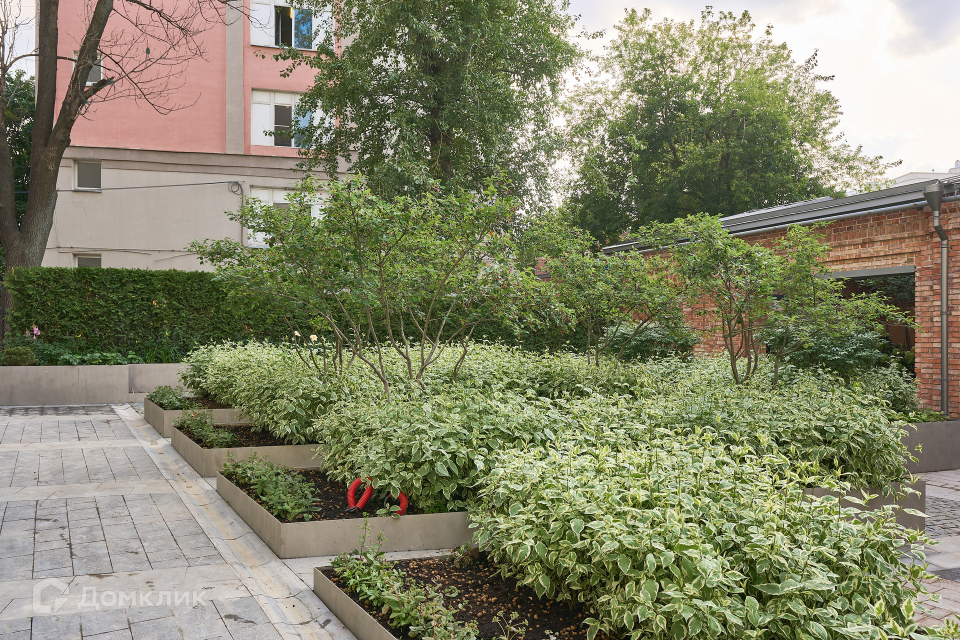 На территории с ландшафтным дизайном по проекту Gillespies , на месте бывшего каретного сарая, организован автоматизированный подземный паркинг на 33 автомобиля.