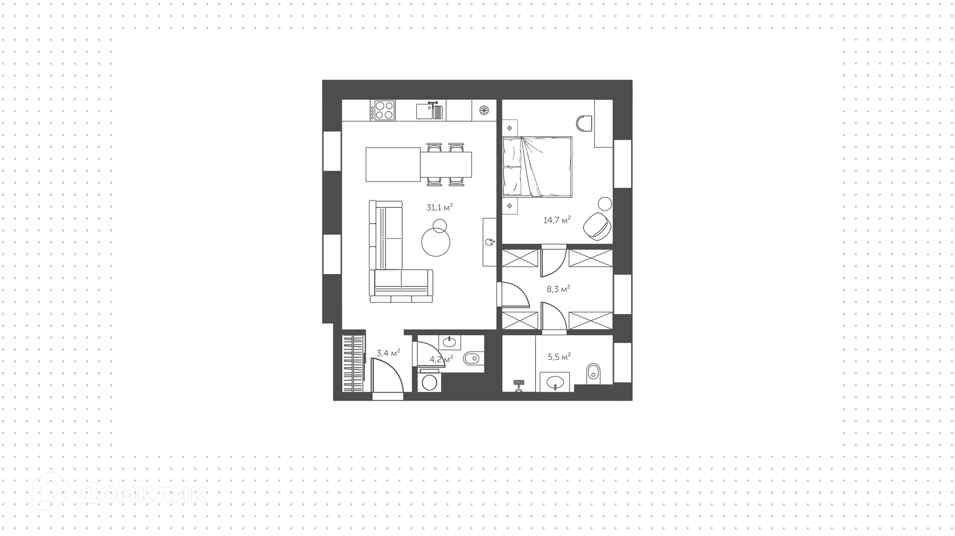 Общая площадь 67.4 м2