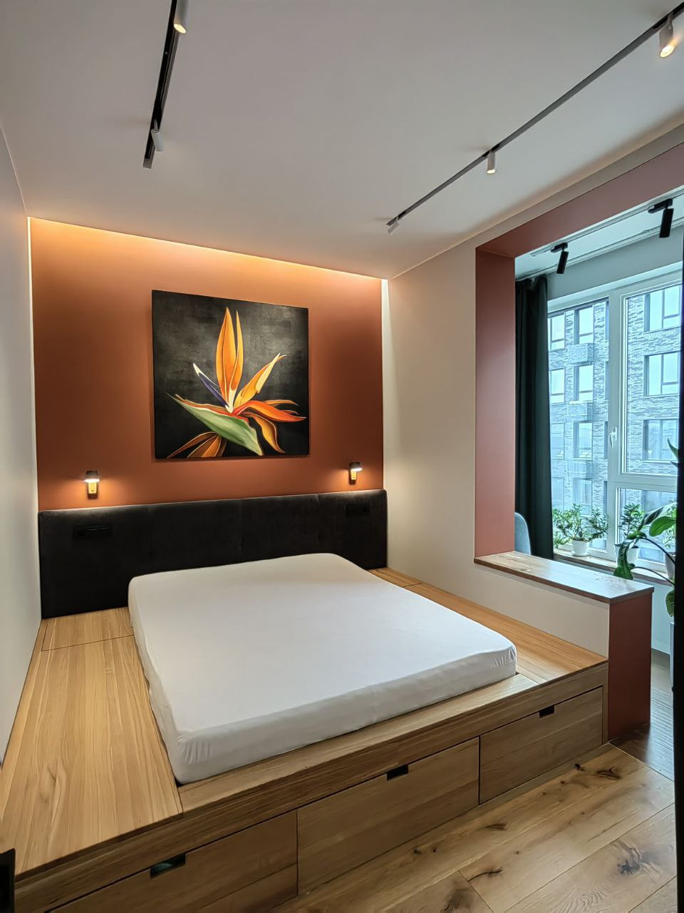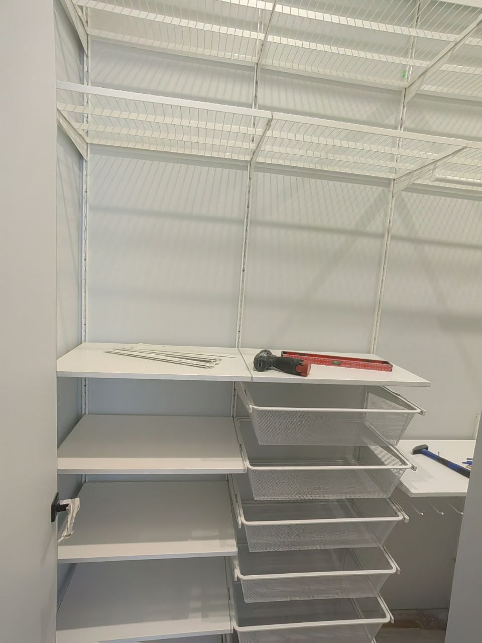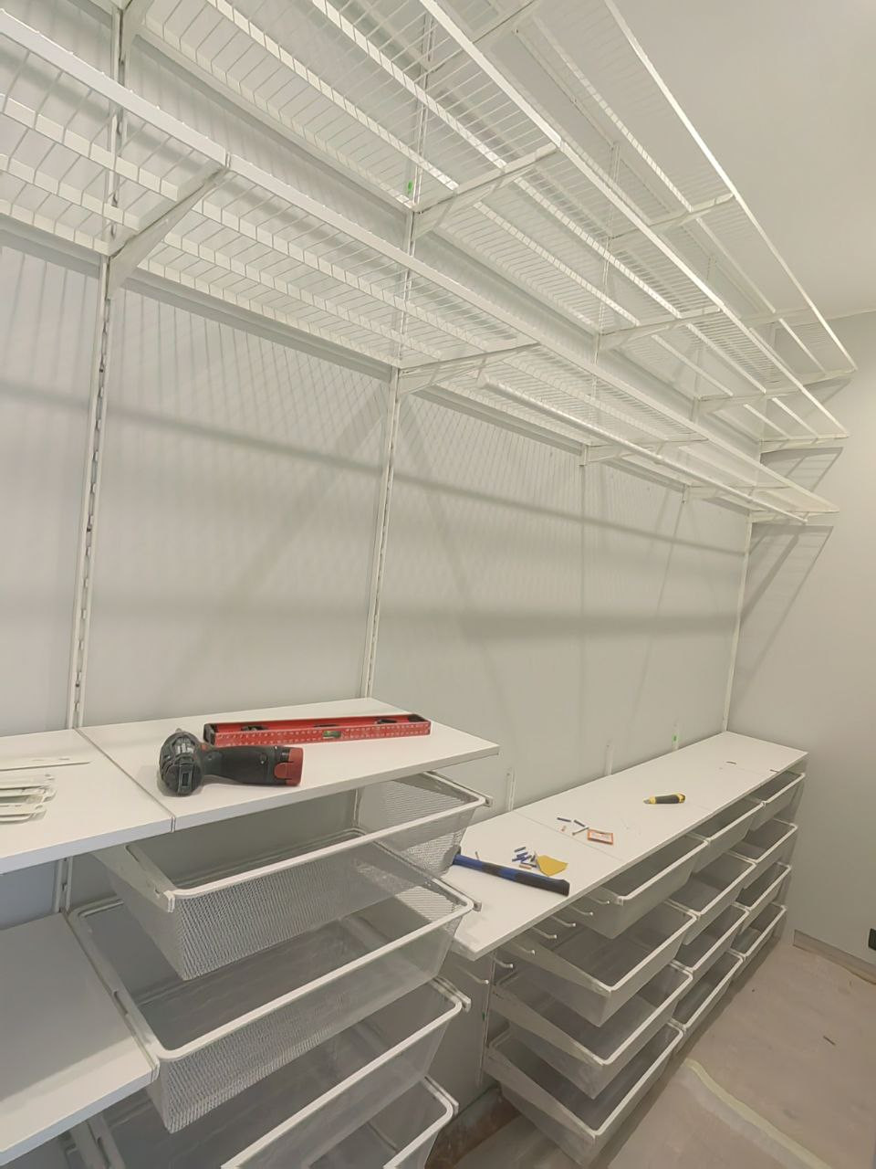 Грамотная и продуманная планировка, большое количество мест для хранения. Отдельная гардеробная с доступом из спальни, места для хранения под подиумом, система стеллажей в постирочной, встроенные шкафы для одежды и обуви в прихожей.