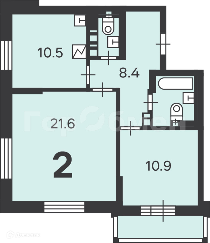Общая площадь 57 м2