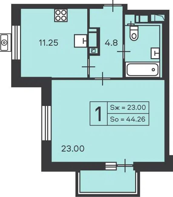 Общая площадь 44.26 м2