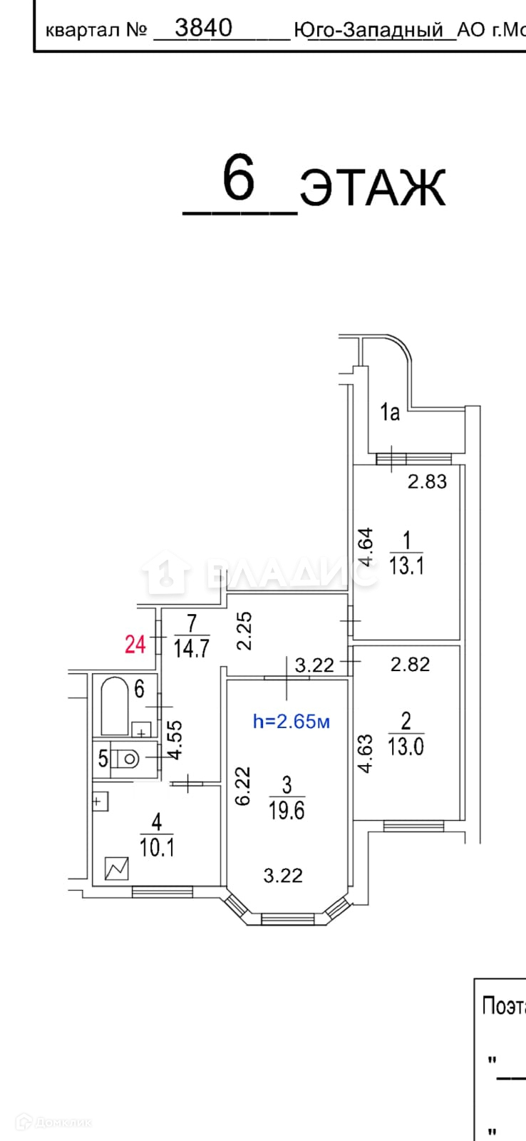 Высота потолков 2.65 м