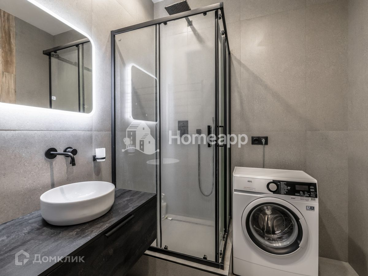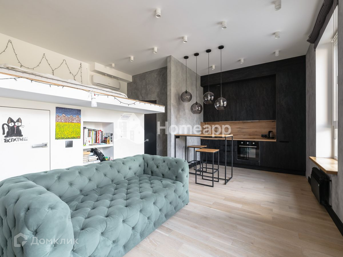 Номер лота: 74562. Продаётся большая студия площадью 32,6 квадратных метра с современным ремонтом. Из больших окон открывается великолепный вид на внутренний двор. Полностью укомплектована встроенной кухней, мебелью и всей необходимой бытовой техникой, установлена система кондиционирования. Под кроватным подиумом сделана полноценная гардеробная, в прихожей встроенные зеркальные шкафы. В санузле установлена душевая кабина, организована зона для стирки.