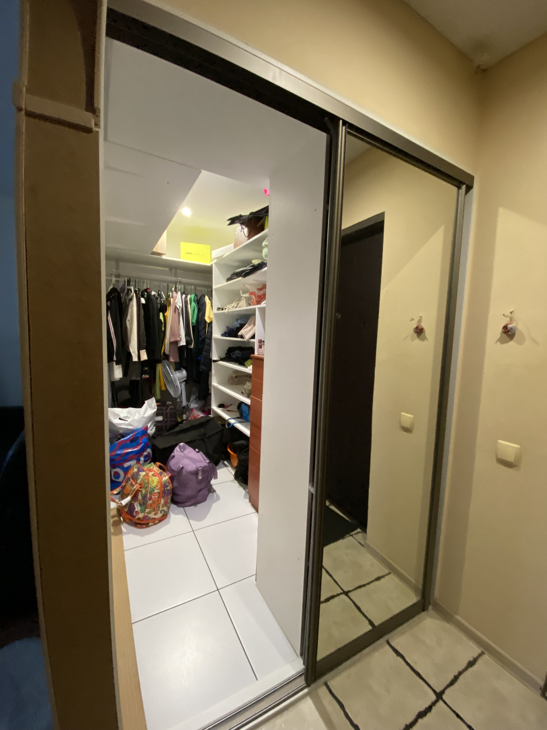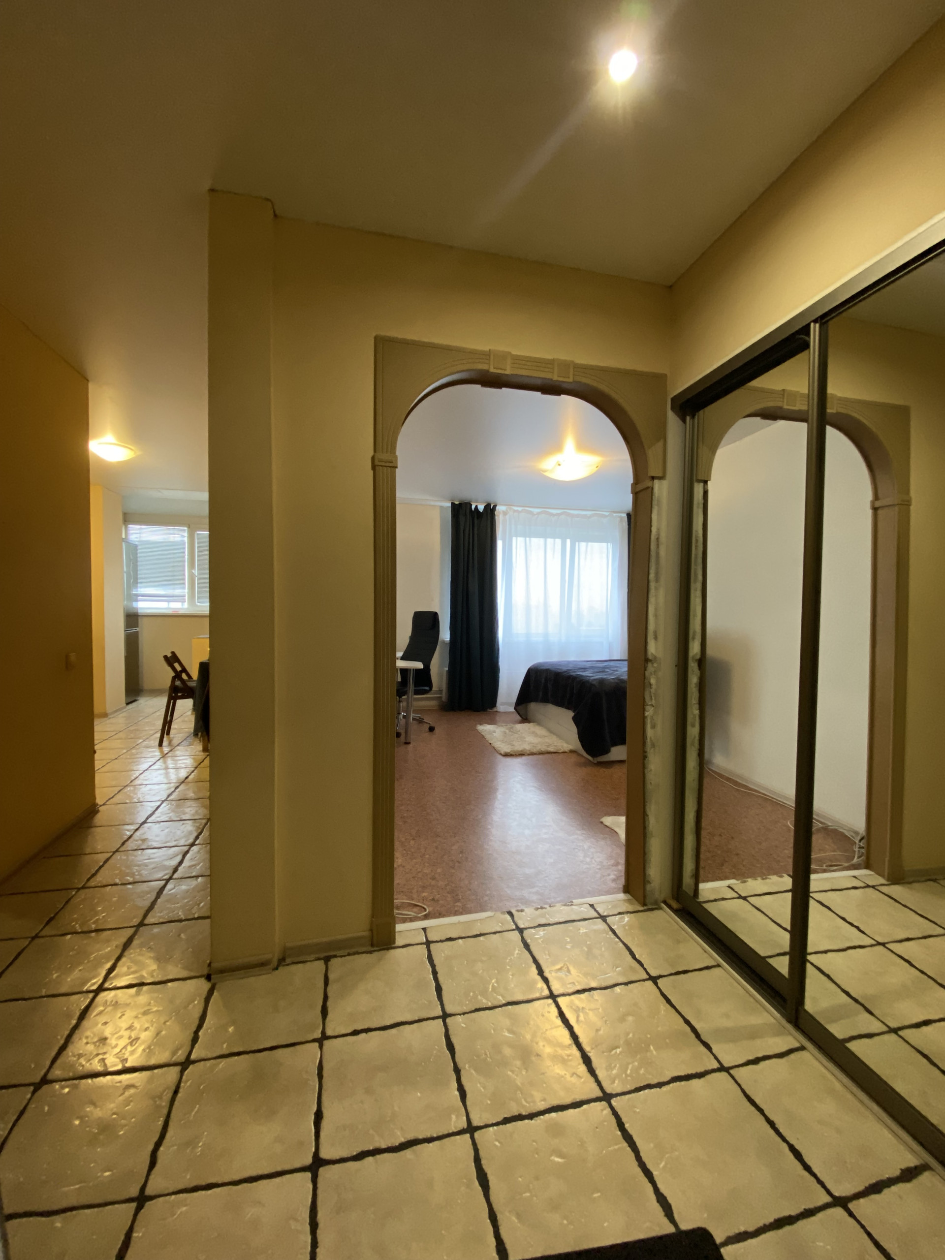 Удобная планировка: в квартире большая гардеробная 5 м2, просторная кухня, большая комната. Панорамный вид во двор, в квартире тишина.
