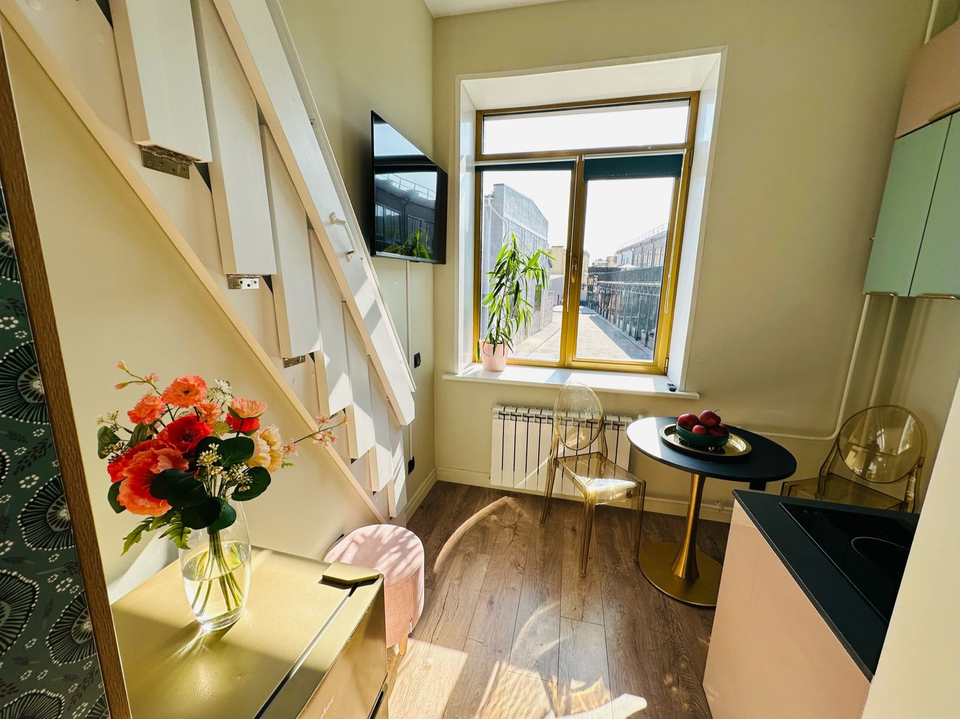 В лофте: Авторский ремонт, выполненный по проекту профессионального дизайнера. Качественный ремонт и хорошо продуманная эргономика.