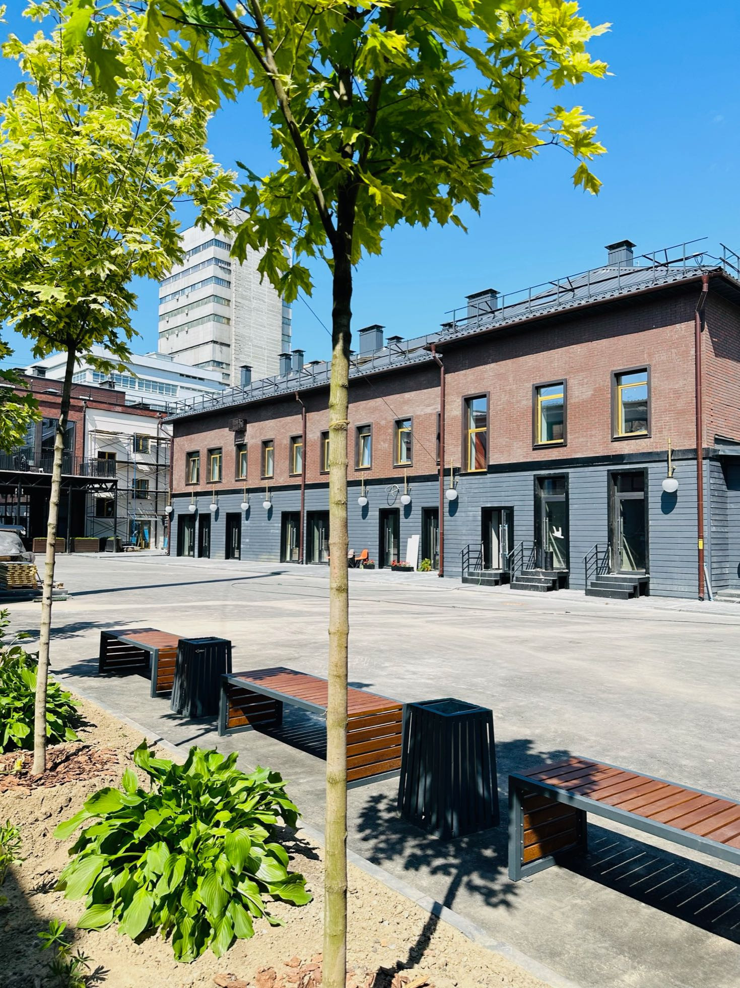 У комплекса большой внутренний двор, парковка у входа, уличные тренажеры.