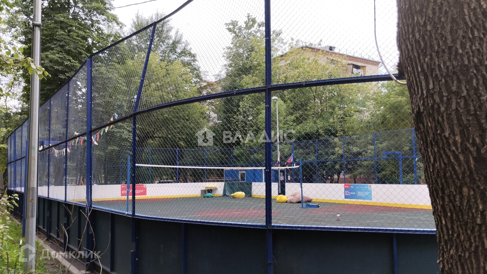 Во дворе спортивные и детские площадки.