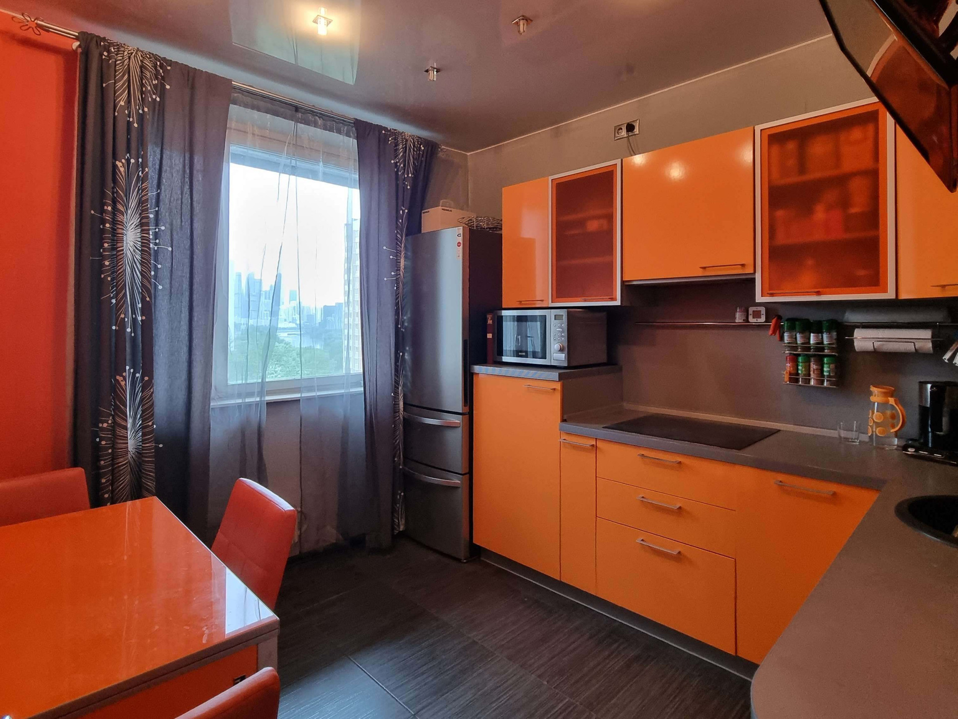 Хорошее состояние евро-ремонта. Современная кухня со всей необходимой техникой для удобства семьи (холодильник, духовой шкаф, плита, посудомочная машина и др.) Установлен проточный нагреватель на случаи отключения горячей воды. Комнаты изолированые, большой коридор, санузел раздельный. Есть балкон.