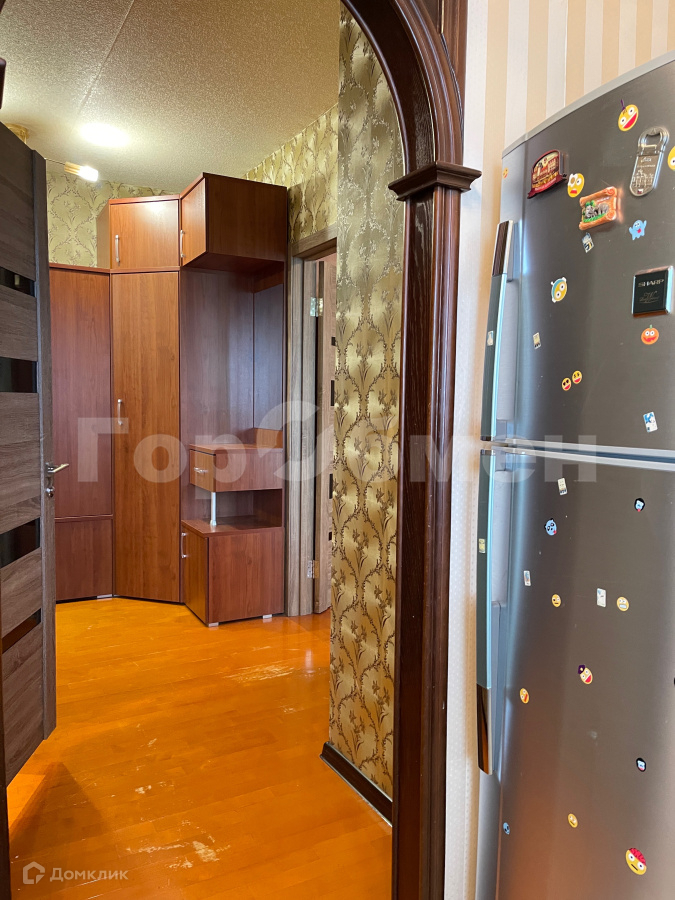 -в коридоре и комнате на полу лежит паркетная доска, на кухне - плитка
