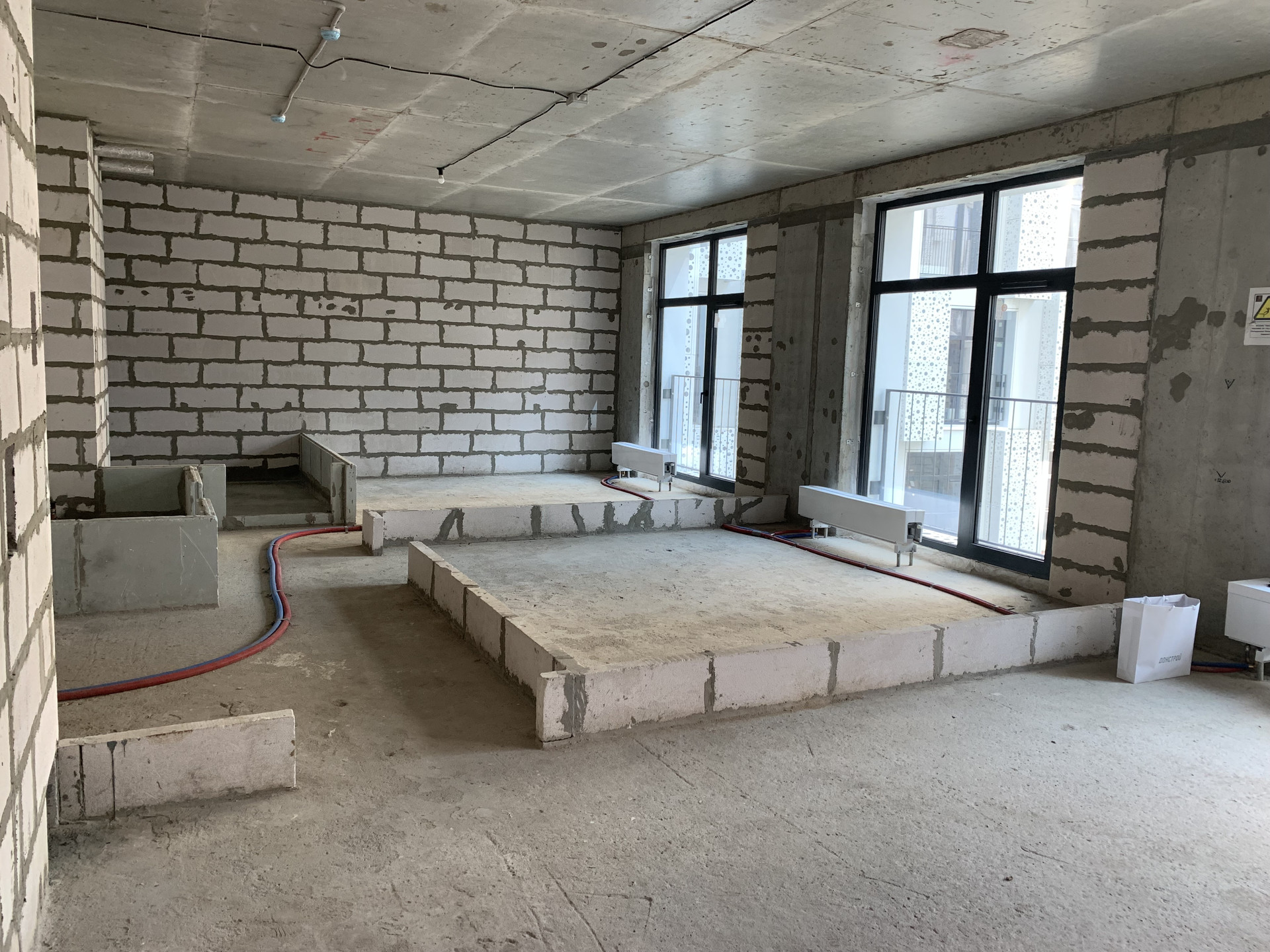 Квартира без чистовой отделки. В квартире выделены мокрые зоны, шикарные окна в пол, заведены инженерные коммуникации (электричество, водоснабжение), есть счетчики.