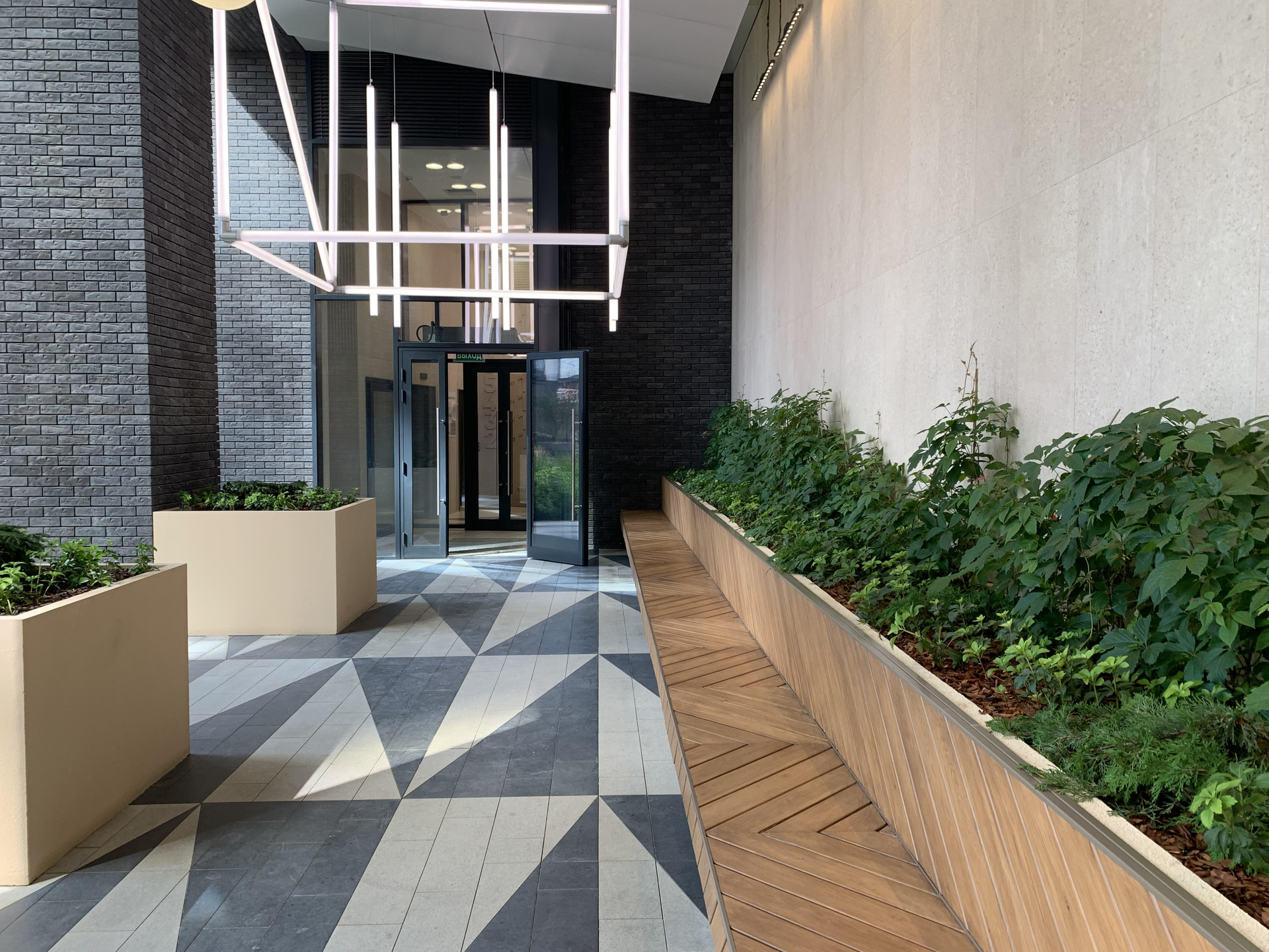 На первом этаже -есть кафе и продуктовые магазины.