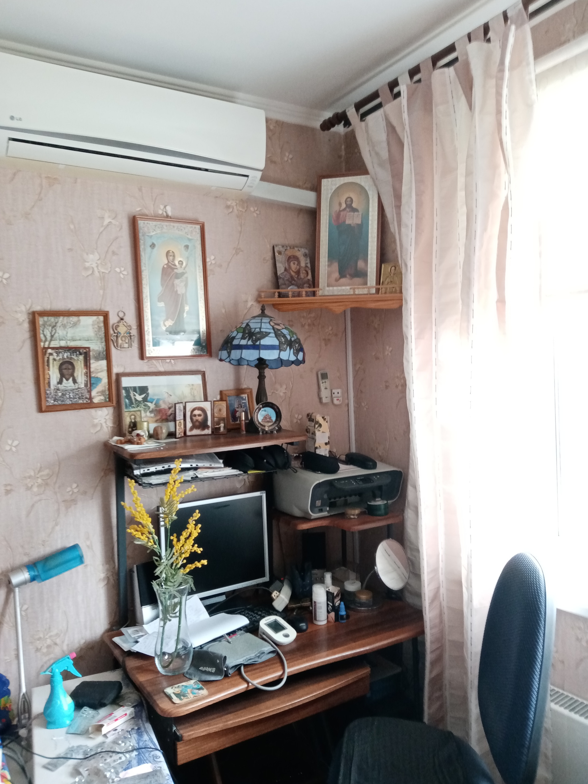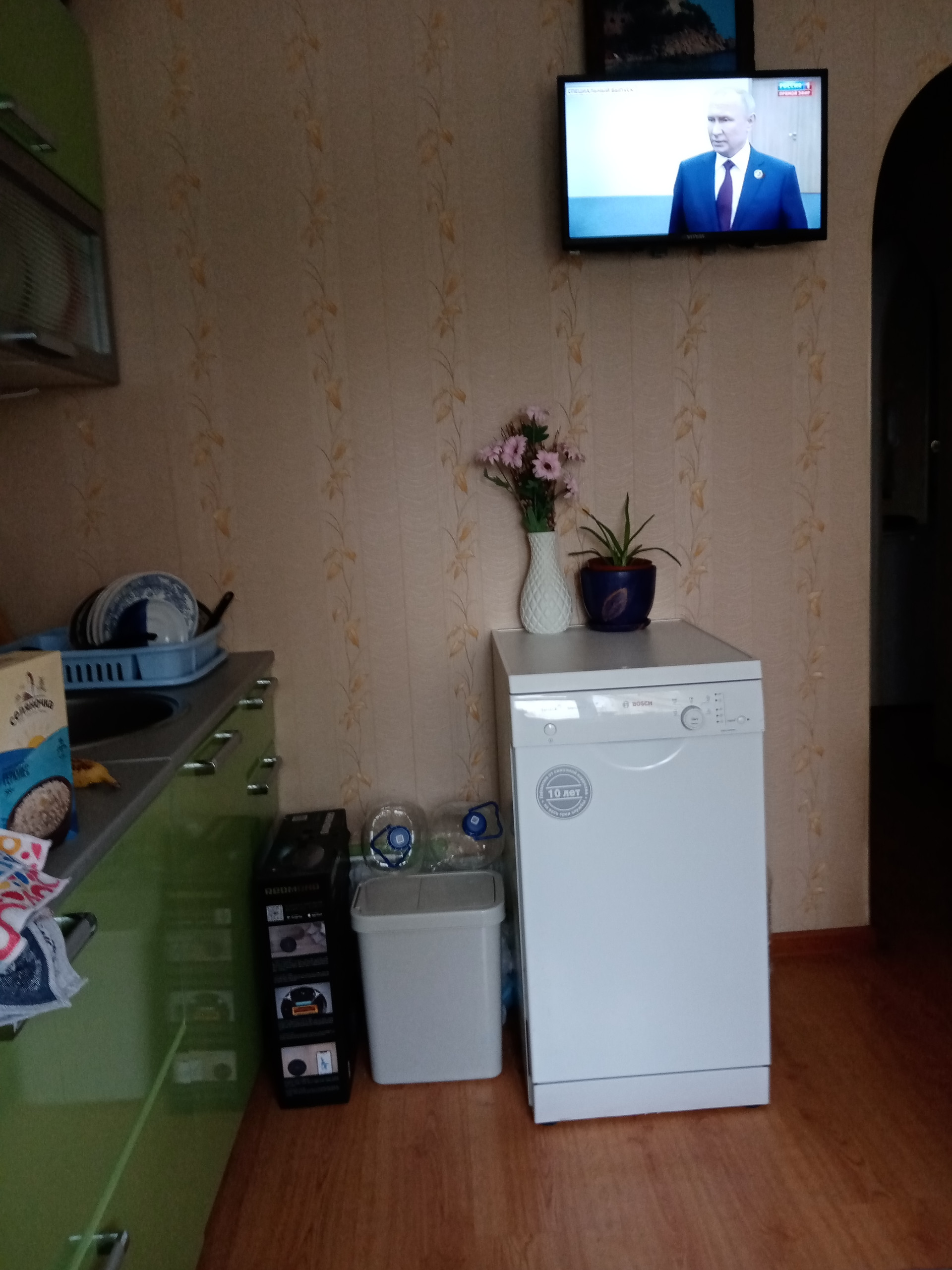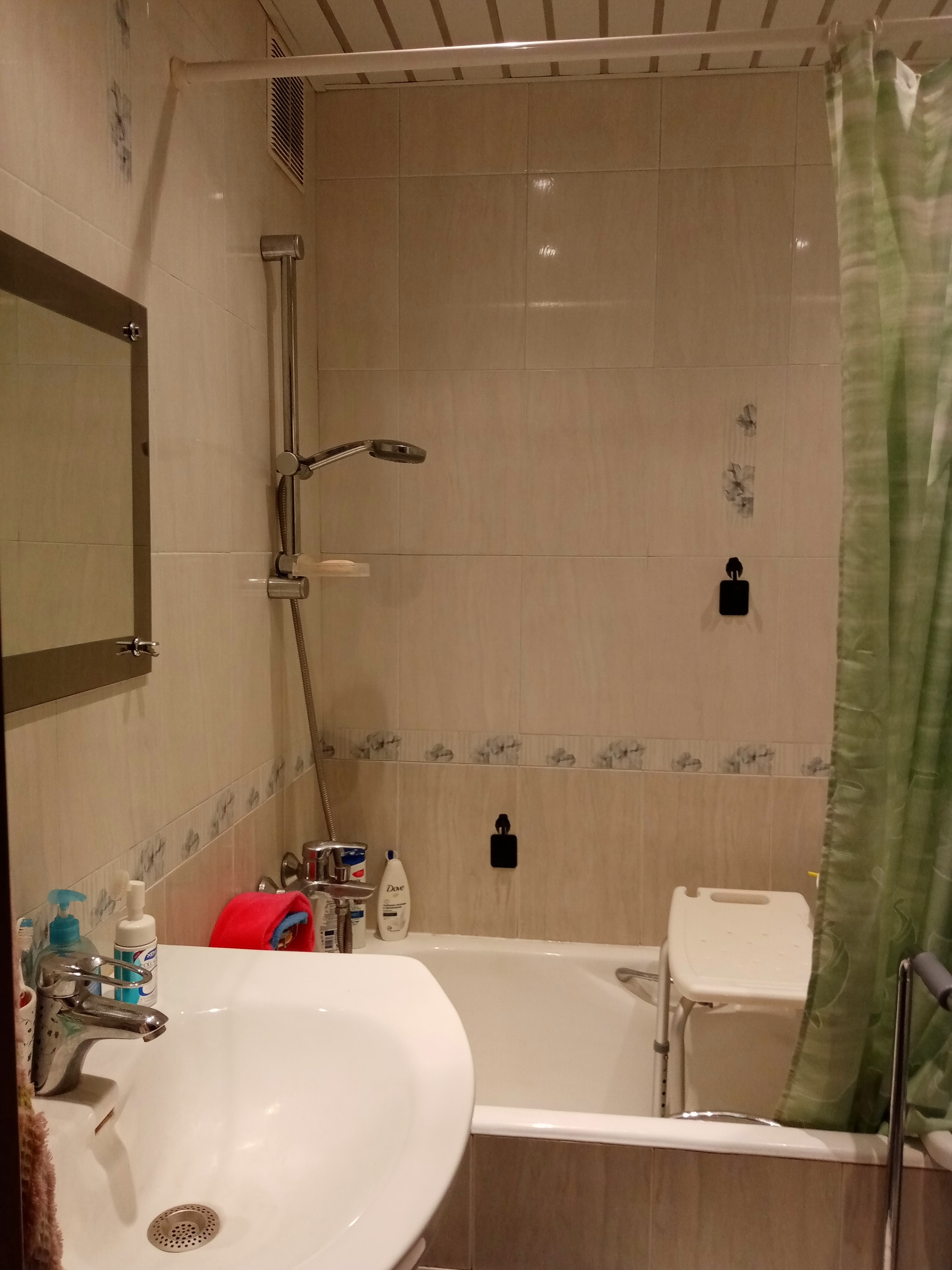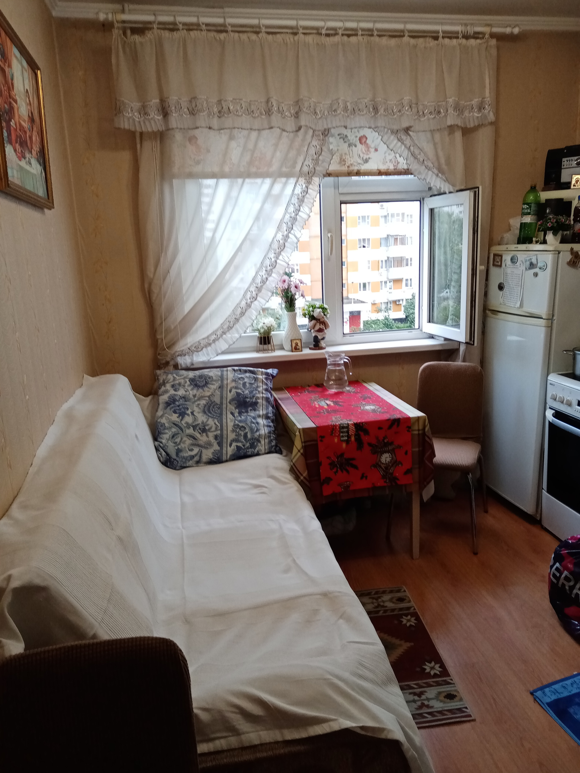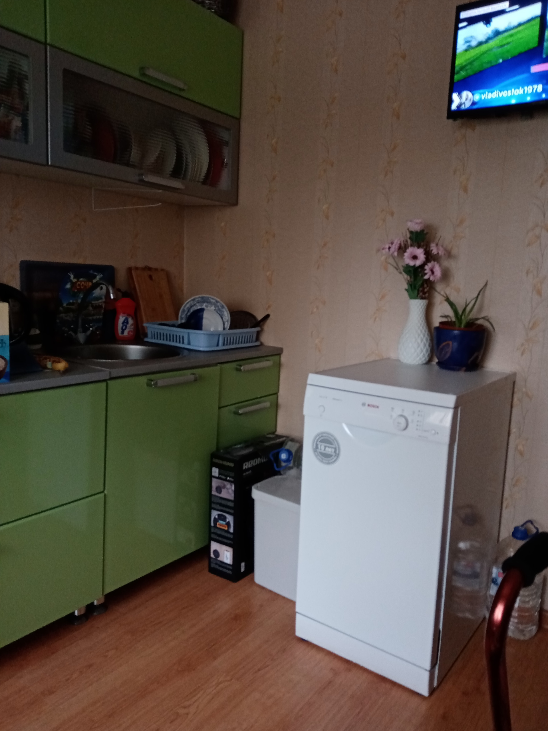Хороший район, относительно новая, т к долго не проживали, кондиционер, окна пластик, ванна и туалет в кафеле до потолка, в прихожей шкаф и гардеробная, посудомойка,холодильник, до метро 10 минут, остановки автобуса около дома, поликлиники, ,  2 парка рядом,2 бассейна, ледовый каток, "пятёрочка", "магнит" и др магазины, аптеки.