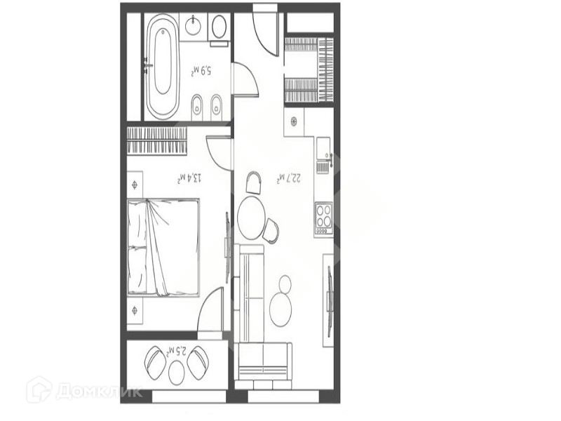 Общая площадь 42 м2