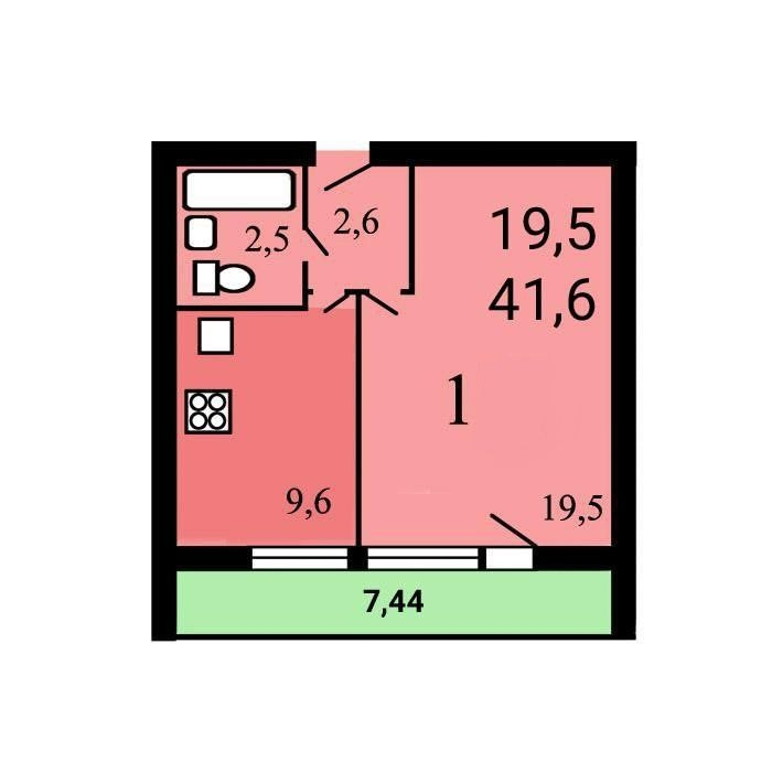 Общая площадь 41.6 м2