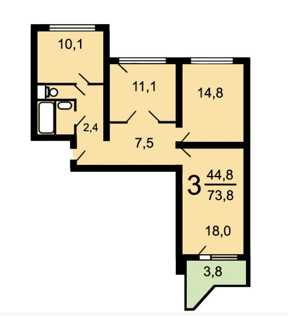 Продается светлая 3-х комнатная квартира, 73,1 м2 Комнаты изолированные 11,1+14,8+18,0 м2, кухня 10,1 м2., коридор 3,8 м2, холл -7,5 м2, лоджия 3,8 м2, с/у раздельный, 12 этаж.
