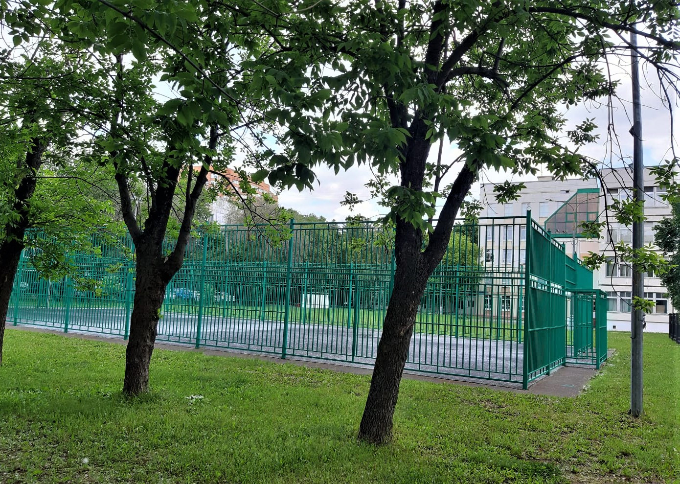 Дом расположен в центре квартала, вдали от улиц. Хорошие виды из окна. Тихо, вокруг зелено, свободно. Во дворе общеобразовательная школа им. С. Есенина, большая детская площадка, хоккейная коробка, волейбольная площадка, рядом общеобразовательная школа им. А. Фридмана.